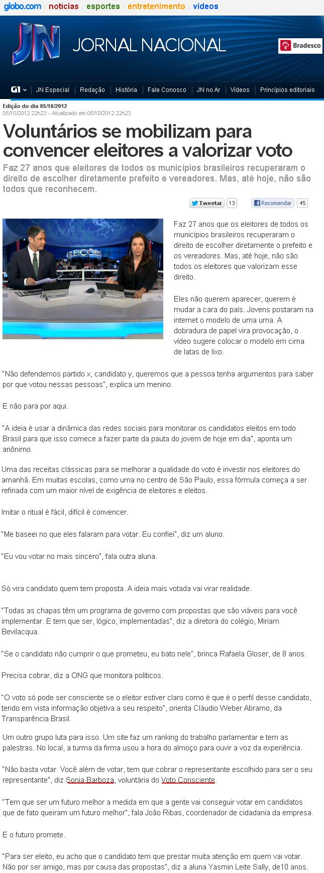 JORNAL NACIONAL (ONLINE) - Voto 2012