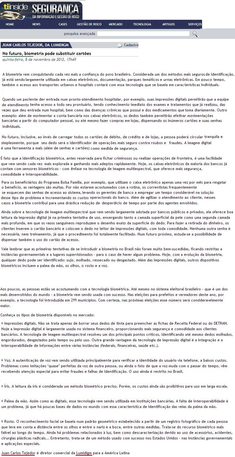 TI INSIDE SEGURANÇA - Será que a impressão digital vai substituir os cartões?