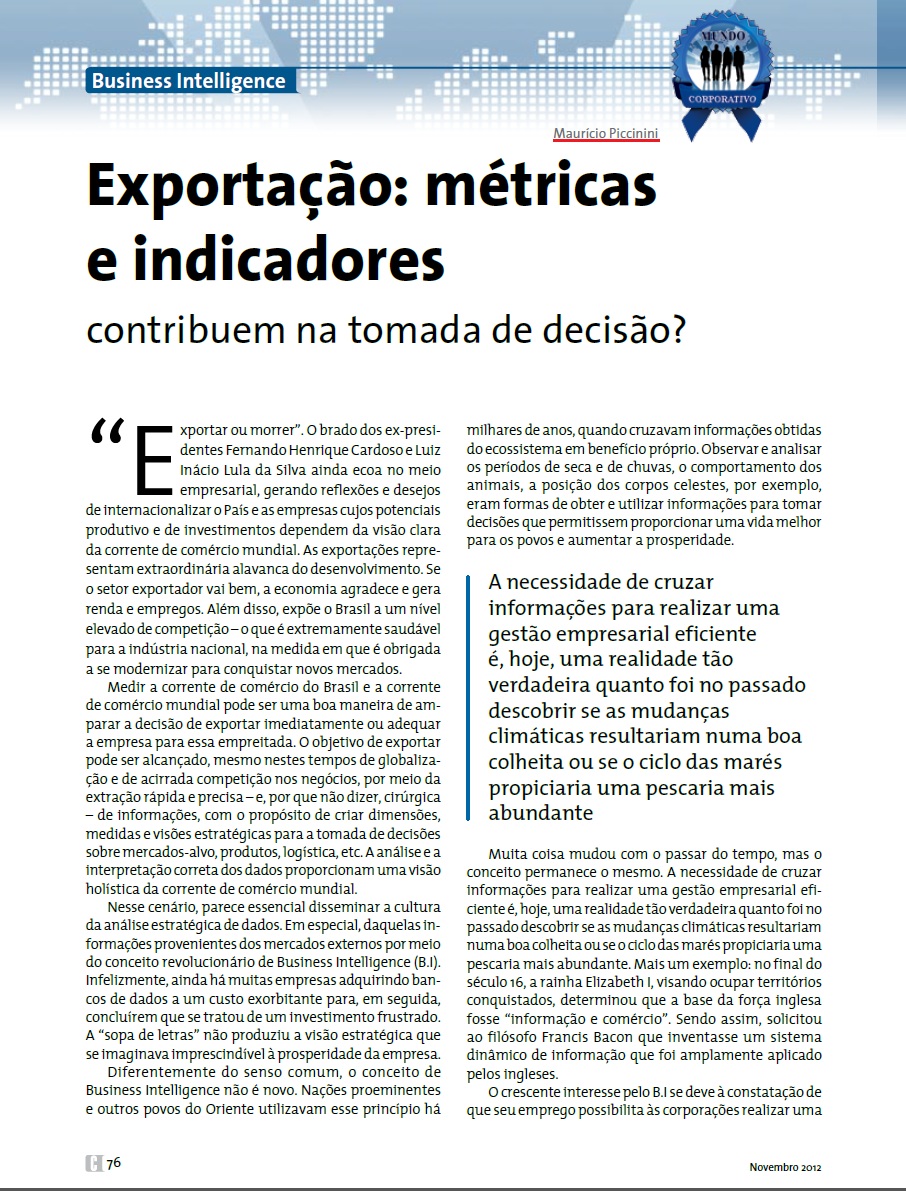 Clipping REVISTA NACIONAL DA CARNE - EXPORTAÇÃO: Métricas e indicadores contribuem na tomada de decisão? 19/11/2012