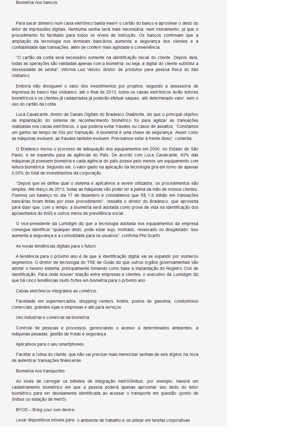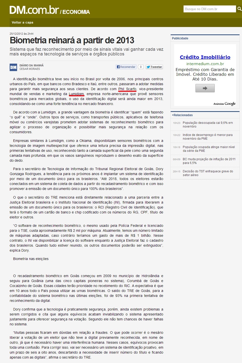 JORNAL DIÁRIO DA MANHÃ (DIGITAL) - Biometria reinará a partir de 2013