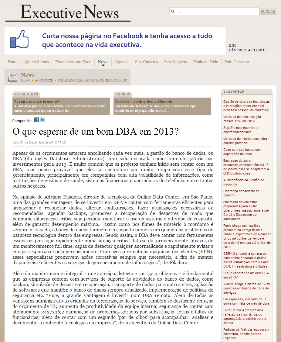 EXECUTIVE NEWS - O que esperar de um bom DBA em 2013?