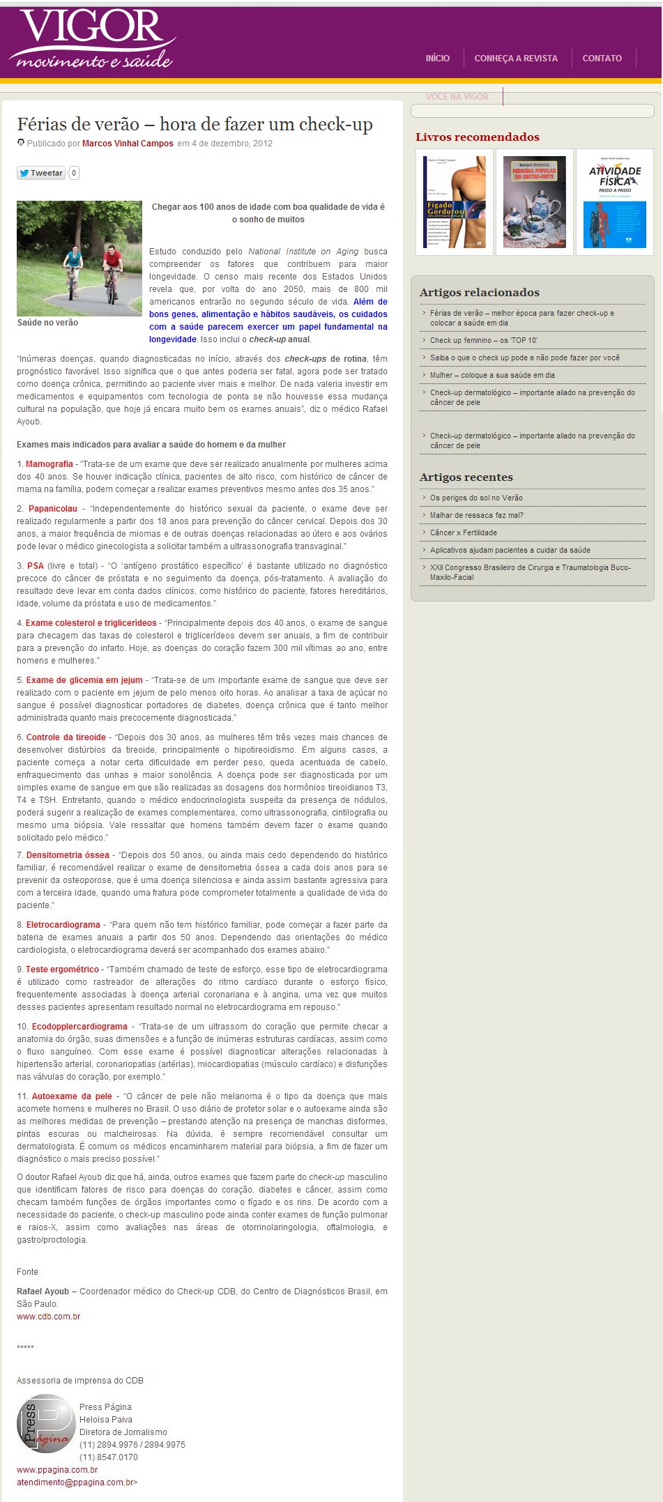 REVISTA VIGOR - Férias de verão: hora de fazer um check-up