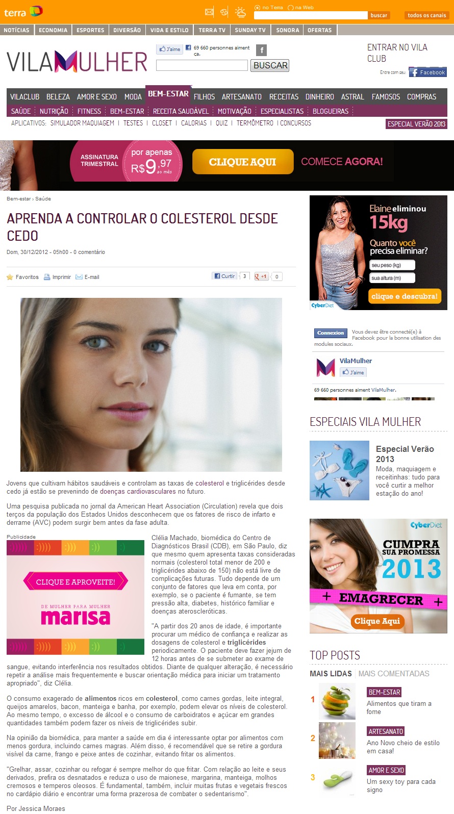 PORTAL TERRA (VILA MULHER) - Aprenda a controlar o colesterol desde cedo