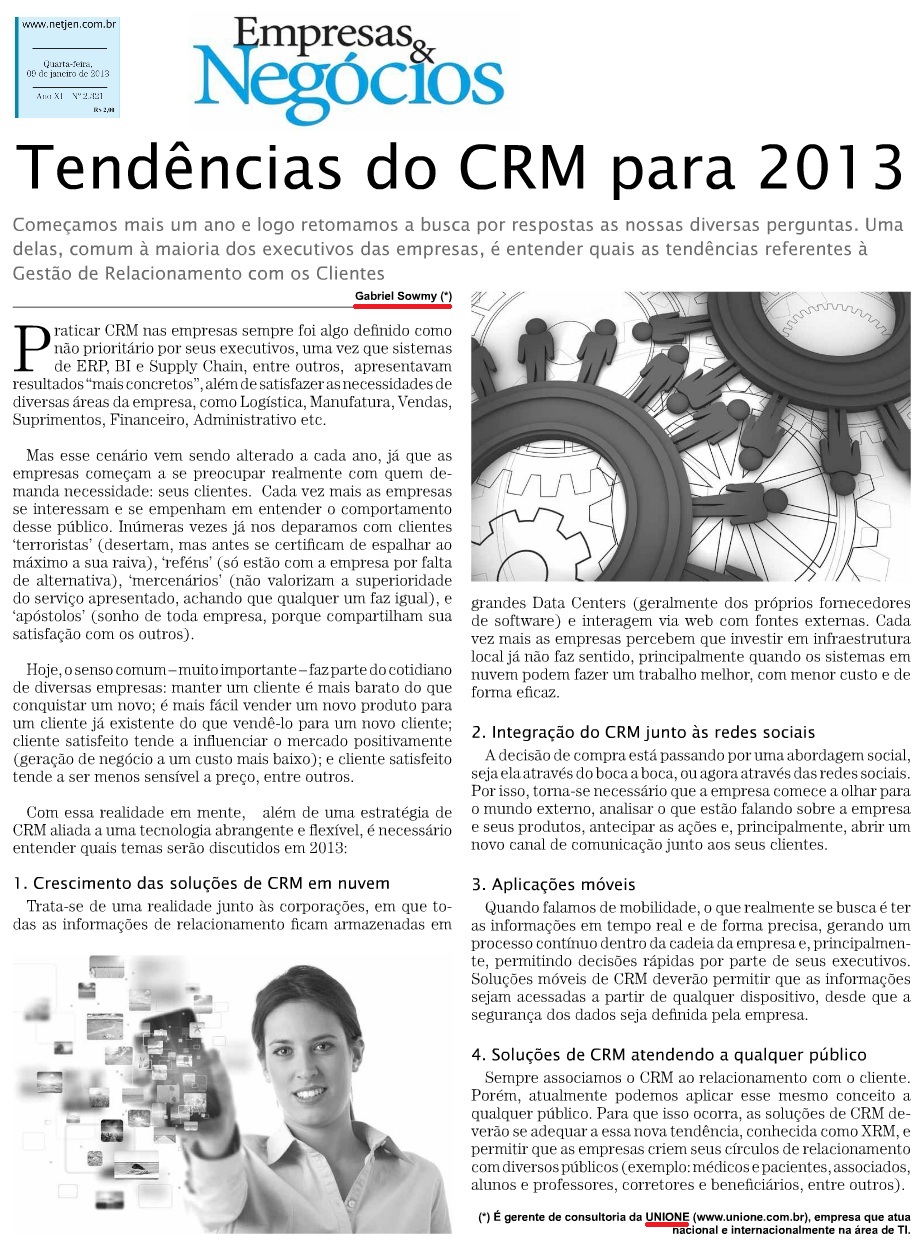JORNAL EMPRESAS & NEGÓCIOS (IMPRESSO) - Tendências de CRM para 2013