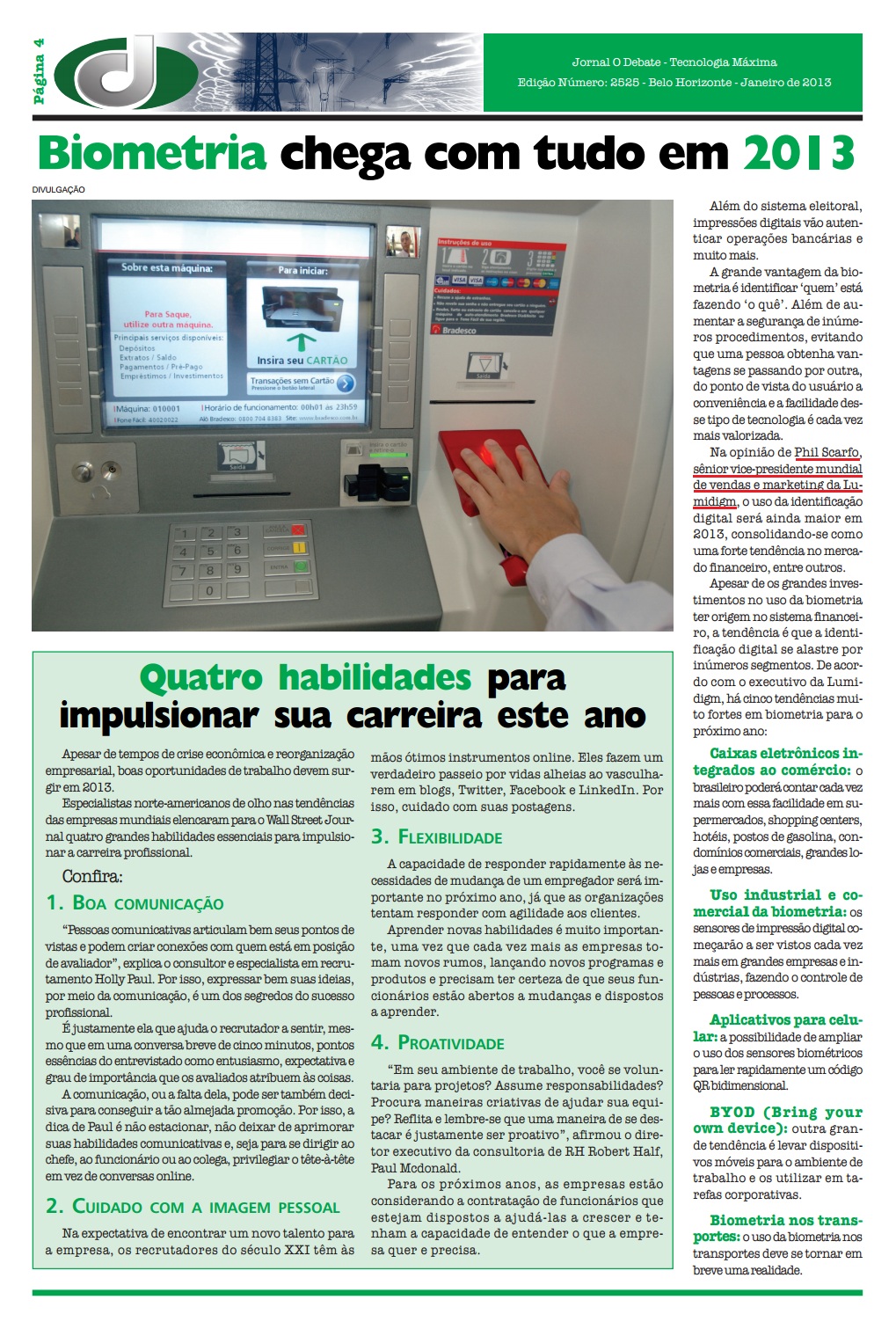 JORNAL O DEBATE (MG) (IMPRESSO) - Biometria chega com tudo em 2013