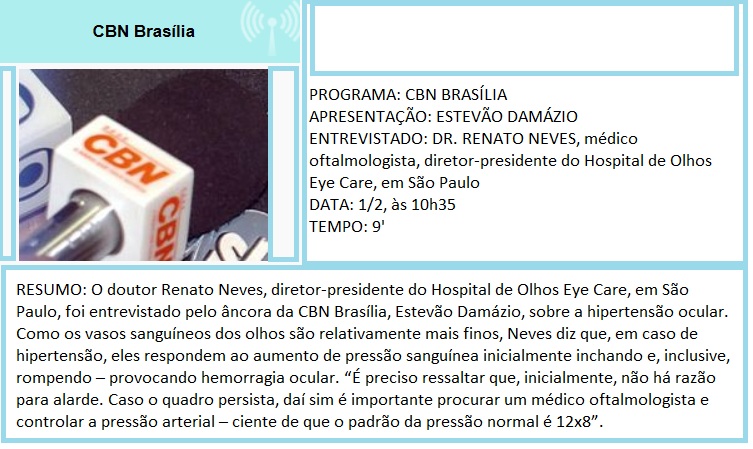 RÁDIO CBN (PROGRAMA CBN BRASÍLIA) - Hipertensão ocular