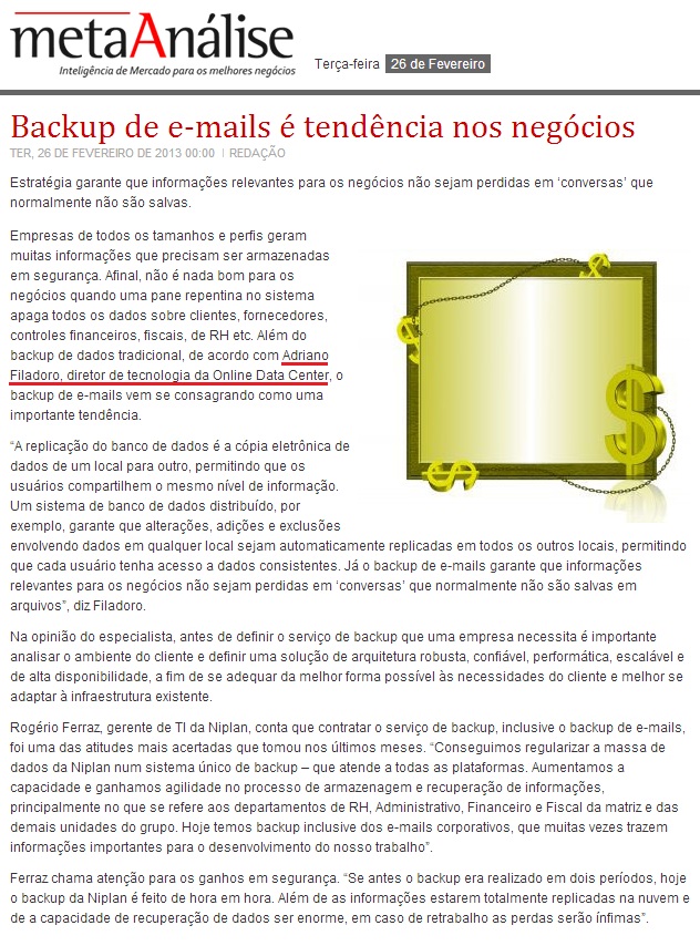 PORTAL META ANÁLISE - Backup de e-mails é tendência nos negócios
