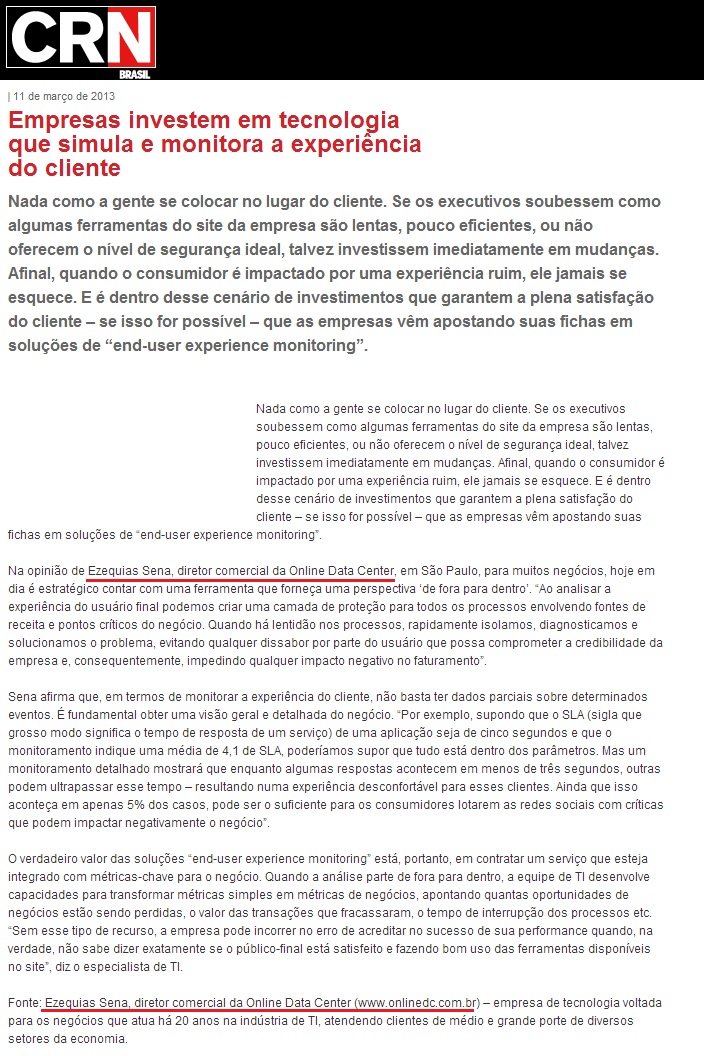 CRN (ONLINE) - Empresas investem em tecnologia que simula experiência do cliente