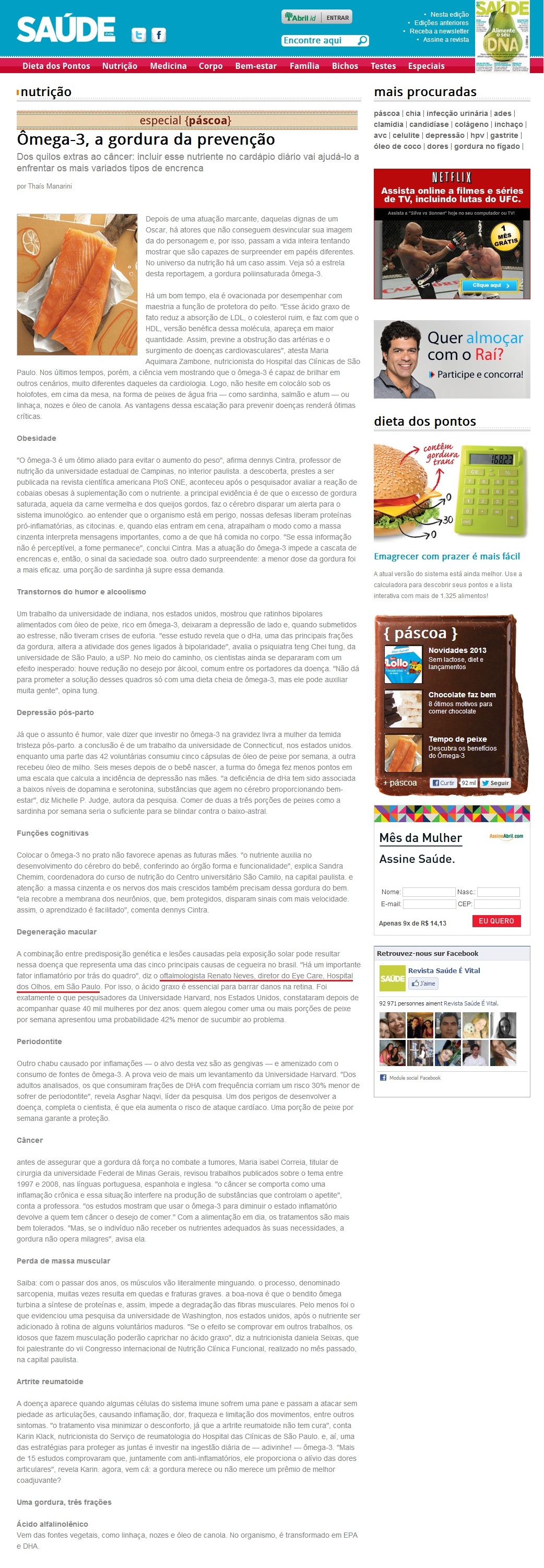 REVISTA SAÚDE (ED. ABRIL) (ONLINE) - Ômega 3, a gordura da prevenção