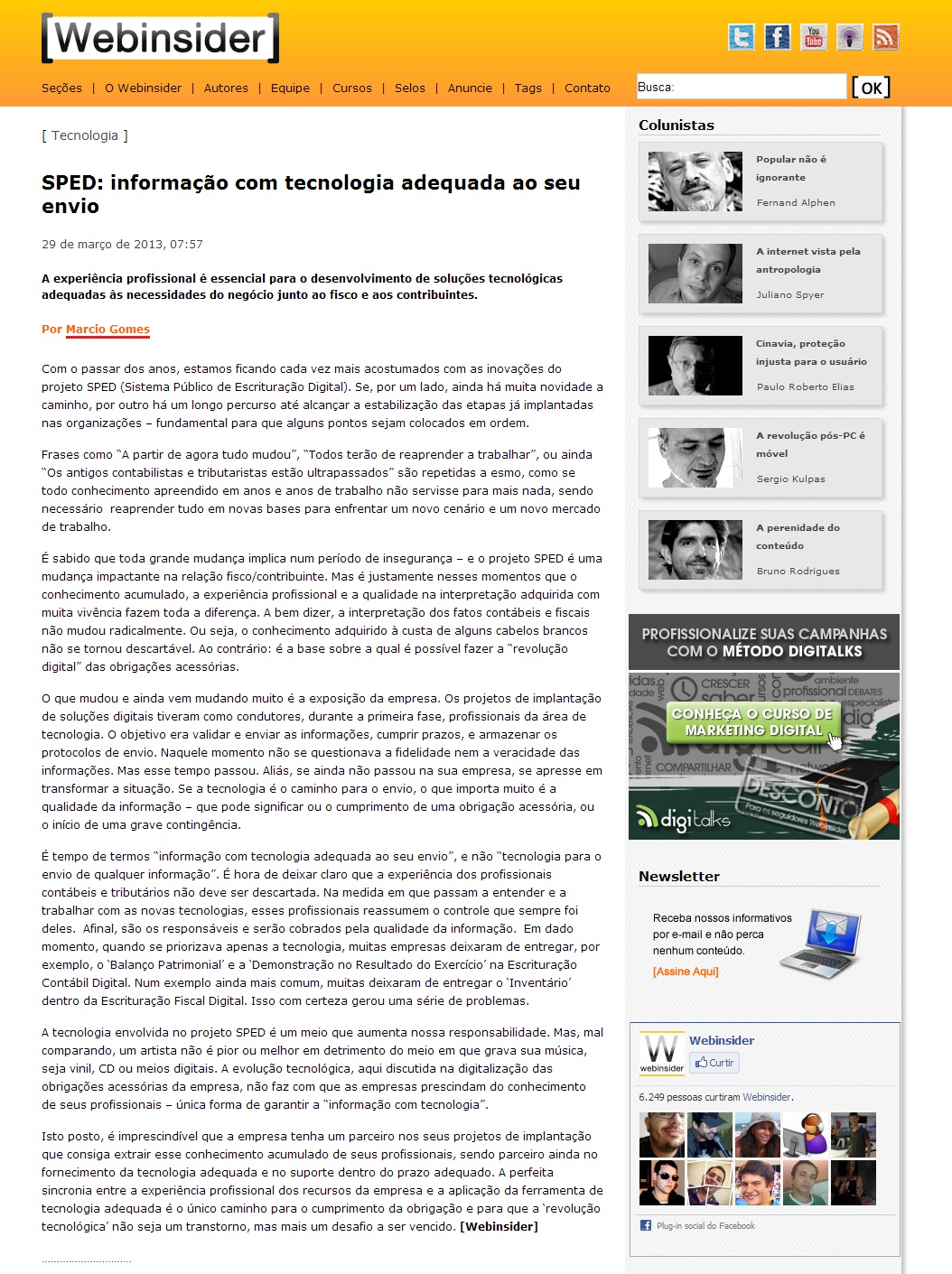 PORTAL WEBINSIDER - SPED - informação com tecnologia adequada a seu envio