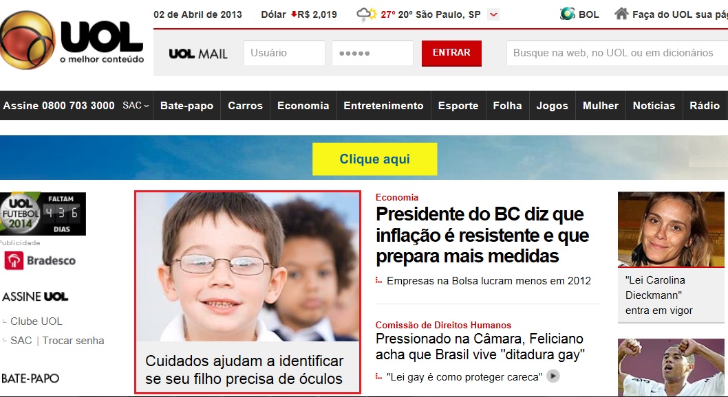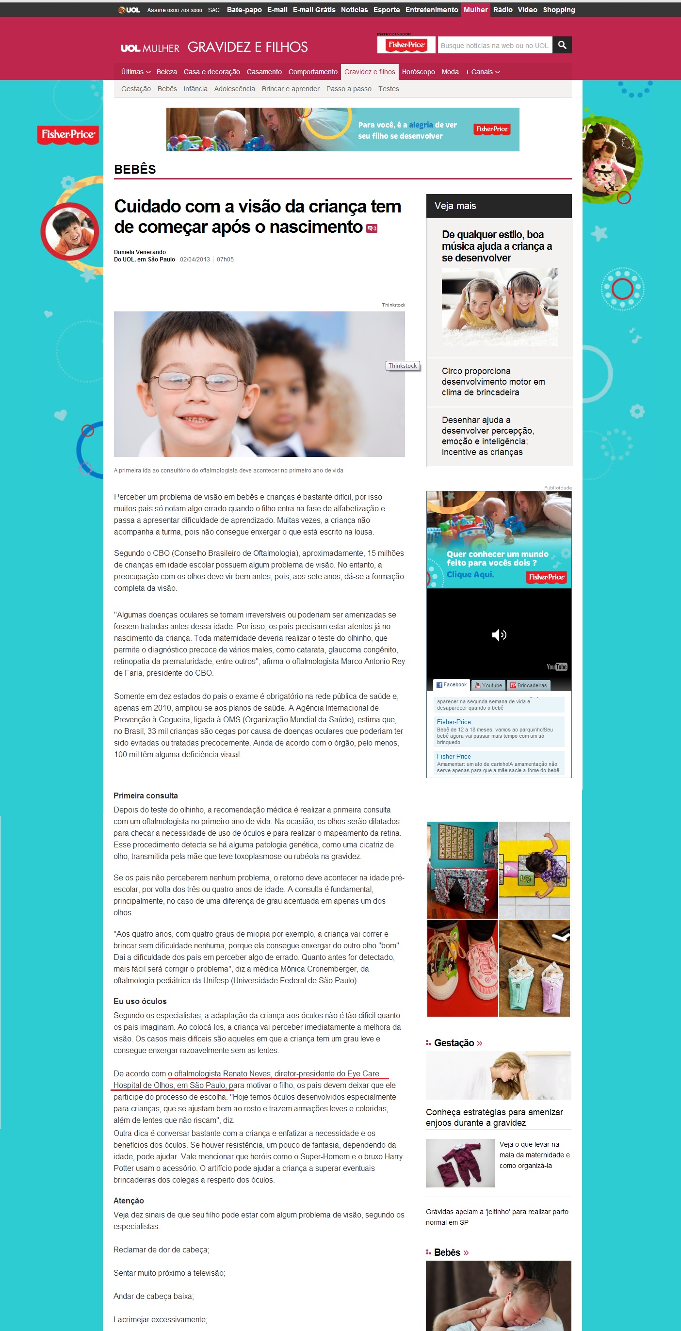 Clipping PORTAL UOL (MANCHETES) - Cuidado com a visão da criança deve começar após nascimento 02/04/2013