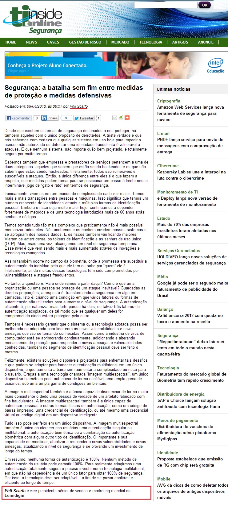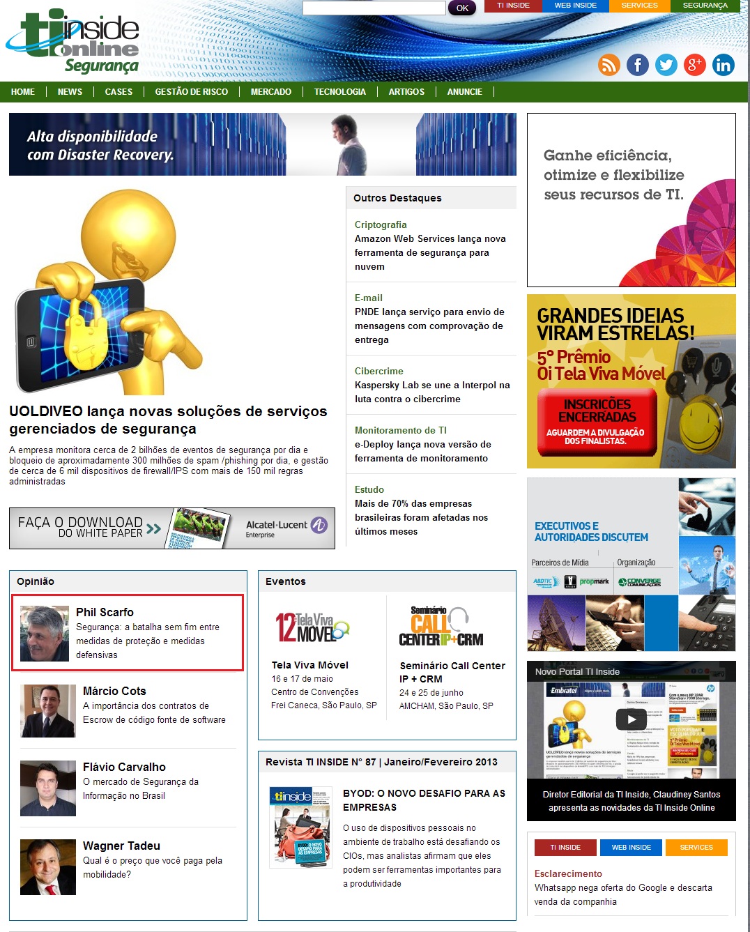 Clipping REVISTA TI INSIDE SEGURANÇA (ONLINE) - Segurança: a batalha sem fim entre medidas de proteção e medidas defensivas 09/04/2013