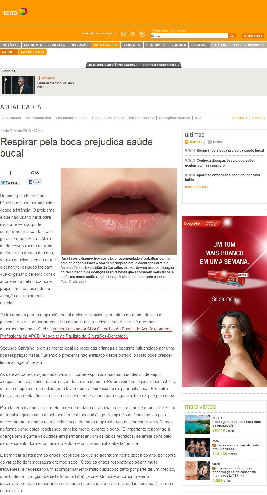 PORTAL TERRA - Respirar pela boca prejudica saúde bucal