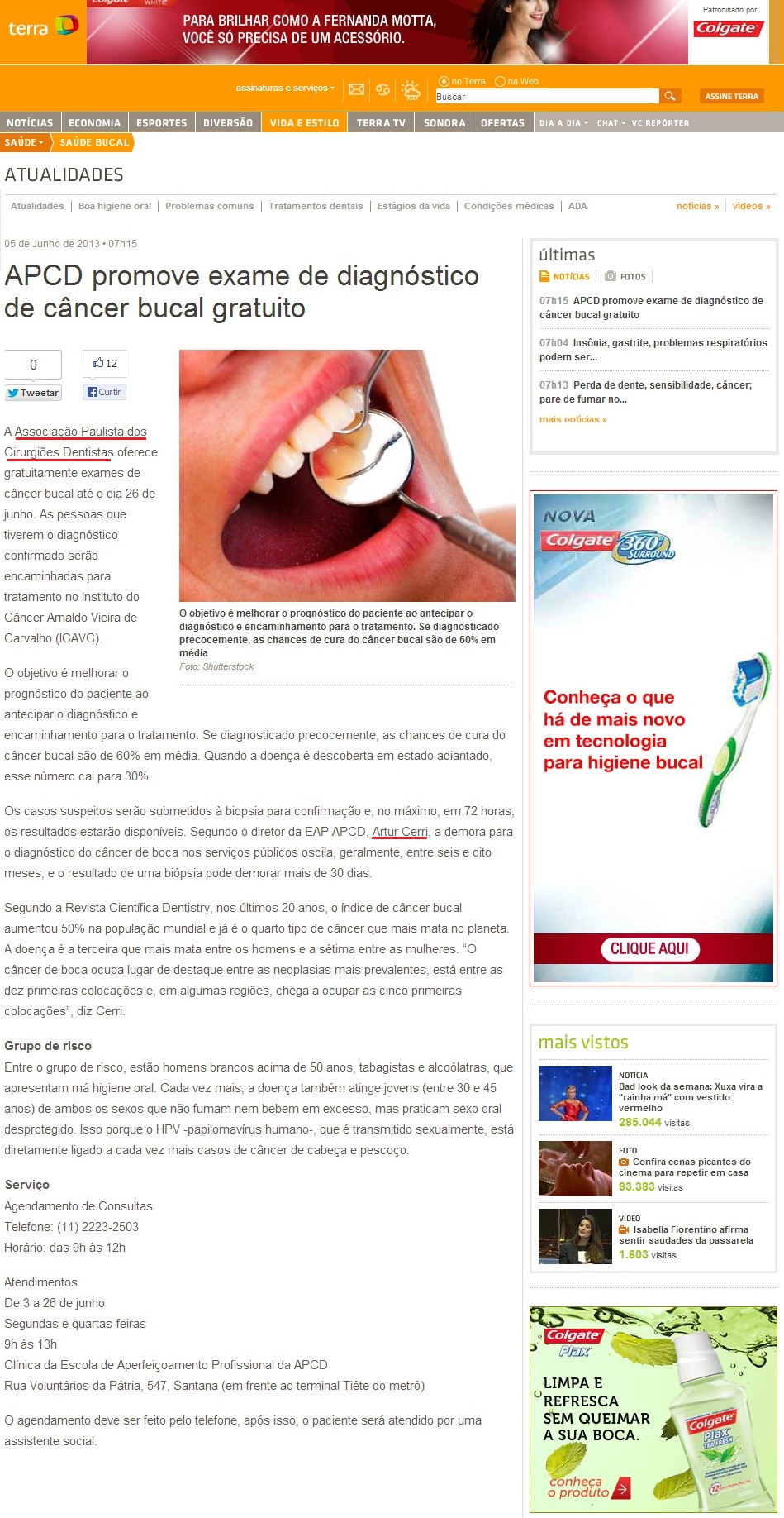 PORTAL TERRA - APCD promove exame de diagnóstico de câncer bucal gratuito