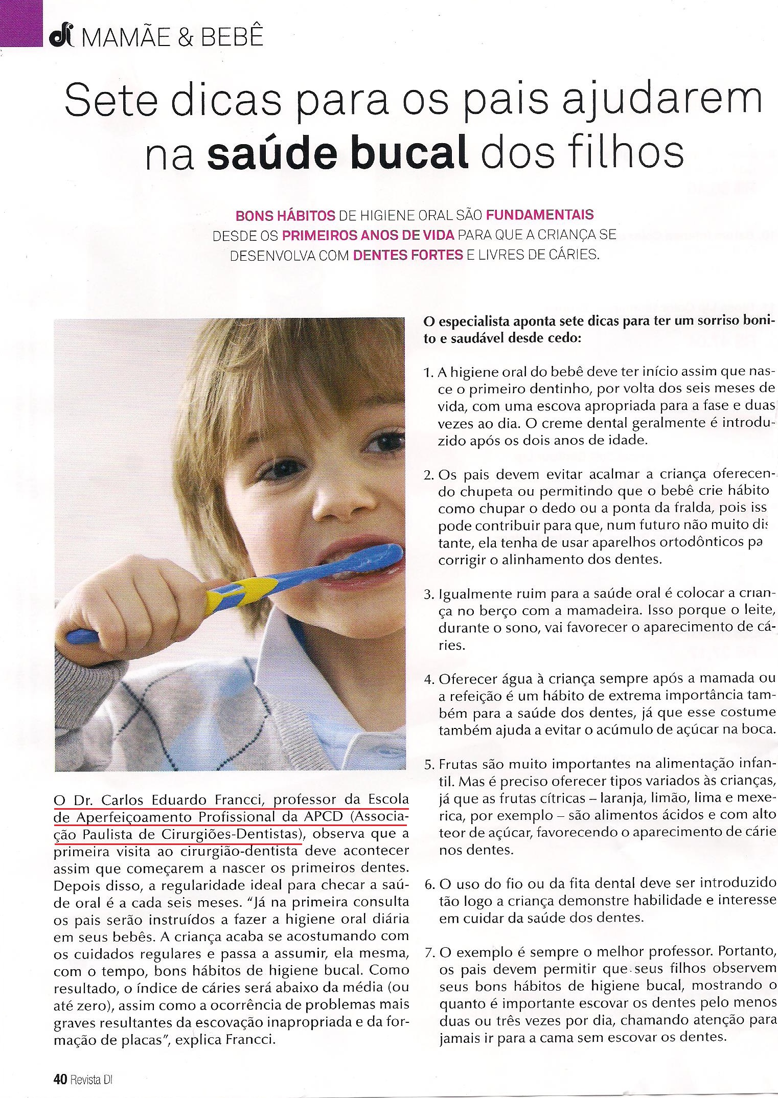 Clipping REVISTA DI (DROGARIA IGUATEMI) (IMPRESSO) - Sete dicas para os pais ajudarem na saúde bucal dos filhos 06/06/2013