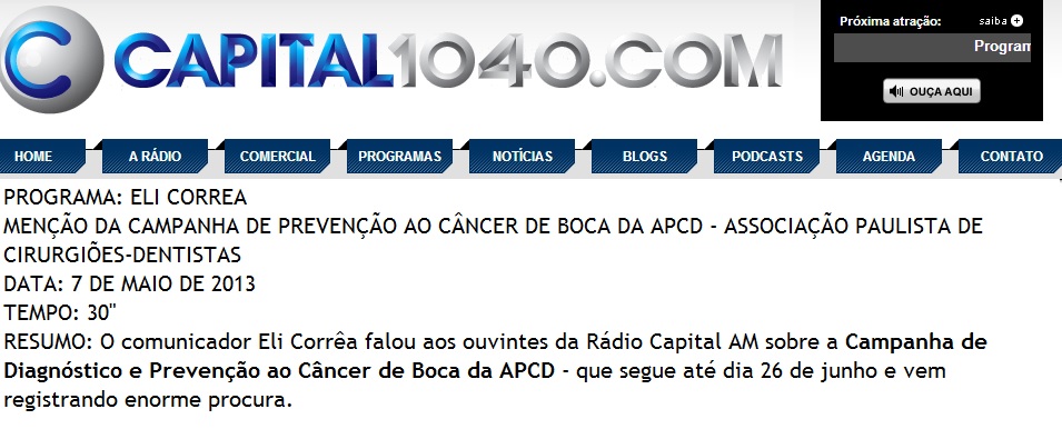 RÁDIO CAPITAL - APCD promove campanha inédita de diagnóstico do câncer de boca