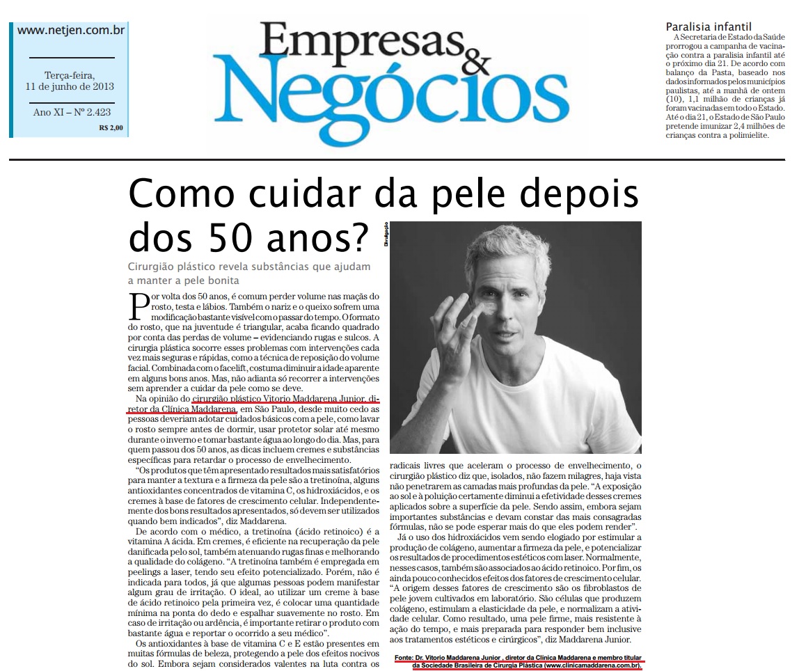 JORNAL EMPRESAS & NEGÓCIOS (IMPRESSO) - Como cuidar da pele depois dos 50 anos?