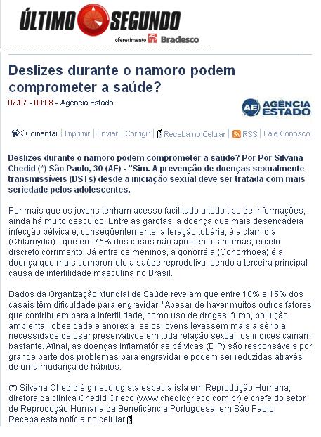 Clipping Portal IG (Último Segundo) - Deslizes durante o namoro podem comprometer a saúde? 07/07/2008