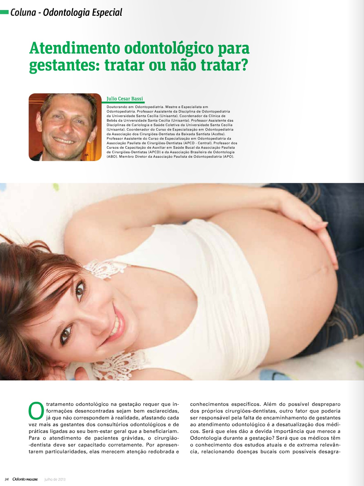 Clipping REVISTA ODONTO MAGAZINE (IMPRESSO) - Atendimento odontológico para gestantes: tratar ou não tratar? 03/07/2013