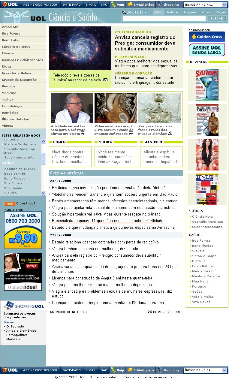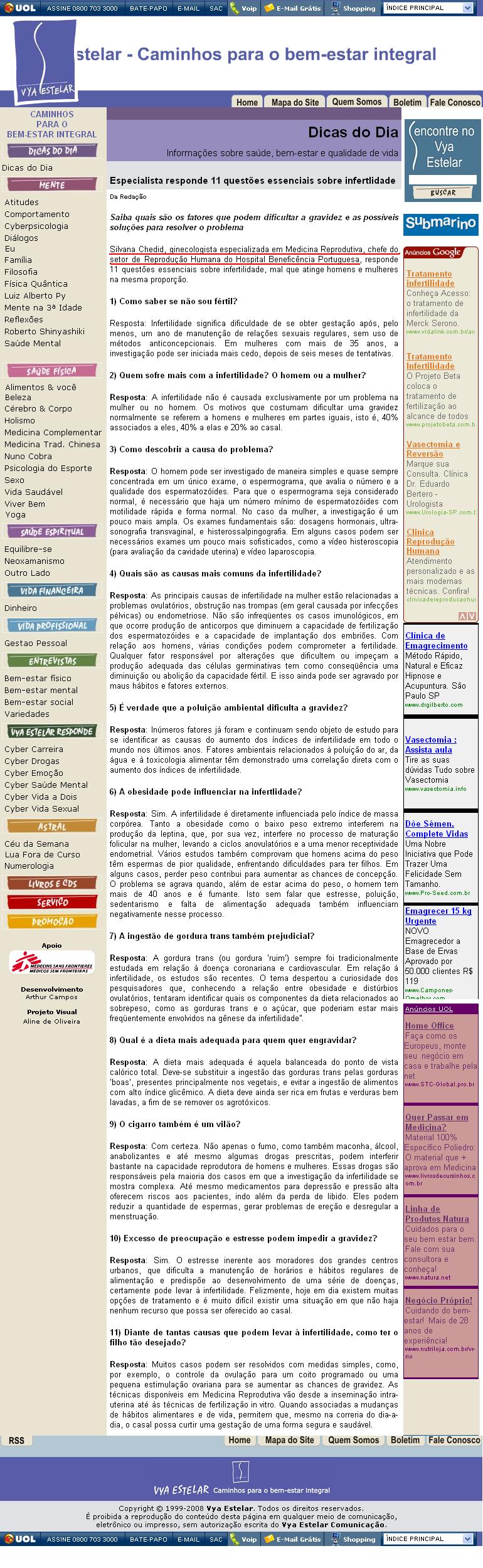 Clipping Portal UOL (Ciência & Saúde) - Especialista responde 11 questões sobre infertilidade 24/07/2008