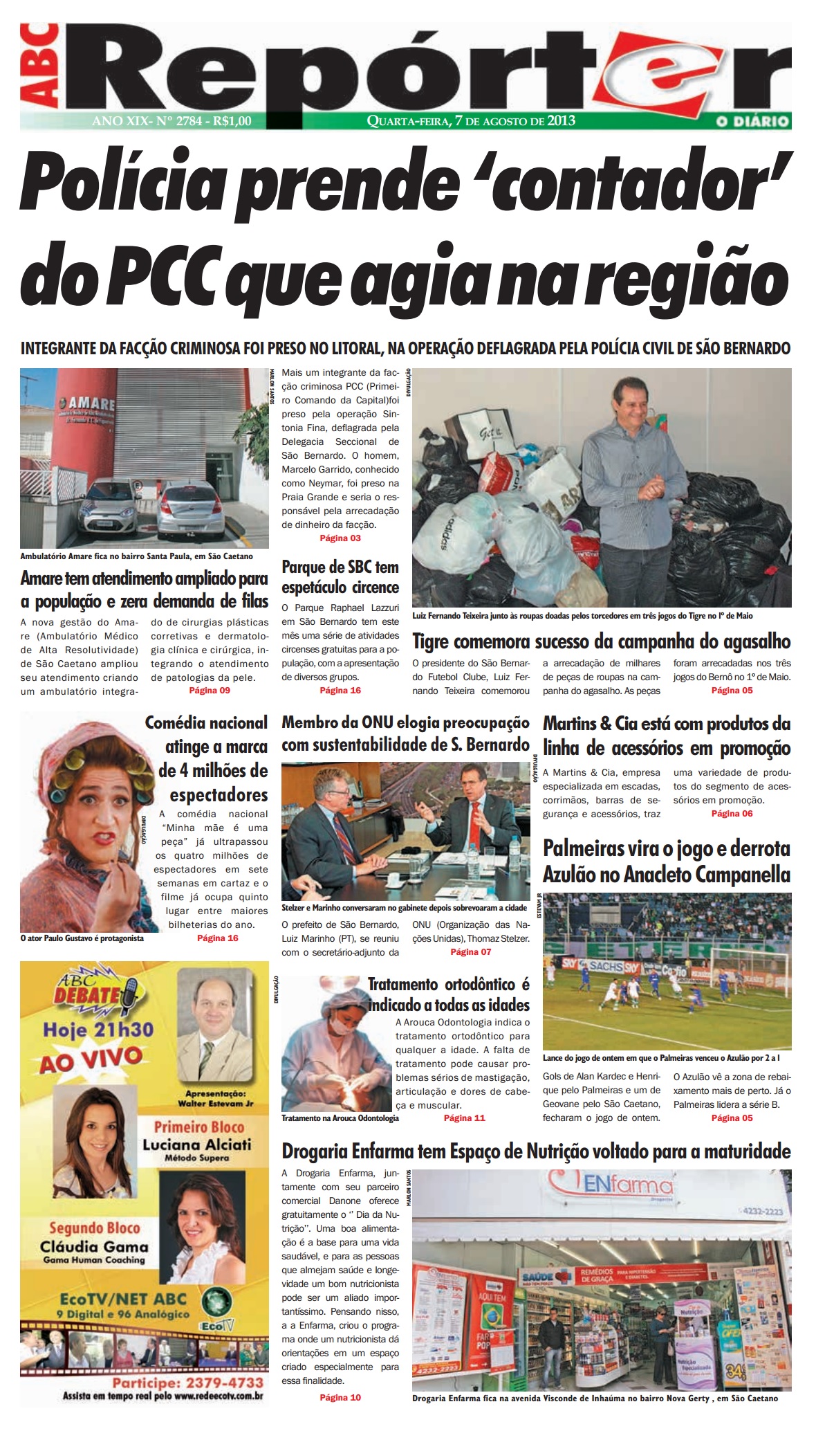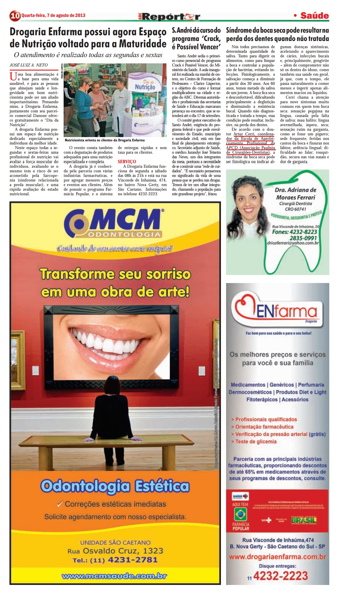 Clipping JORNAL ABC REPÓRTER (IMPRESSO) - Síndrome da boca seca pode resultar na perda dos dentes quando não tratada 07/08/2013