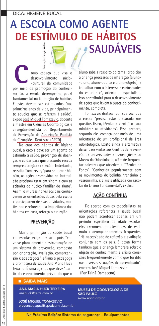 Clipping REVISTA DIRECIONAL ESCOLAS - Escola como agente de estímulos de hábitos saudáveis 15/08/2013