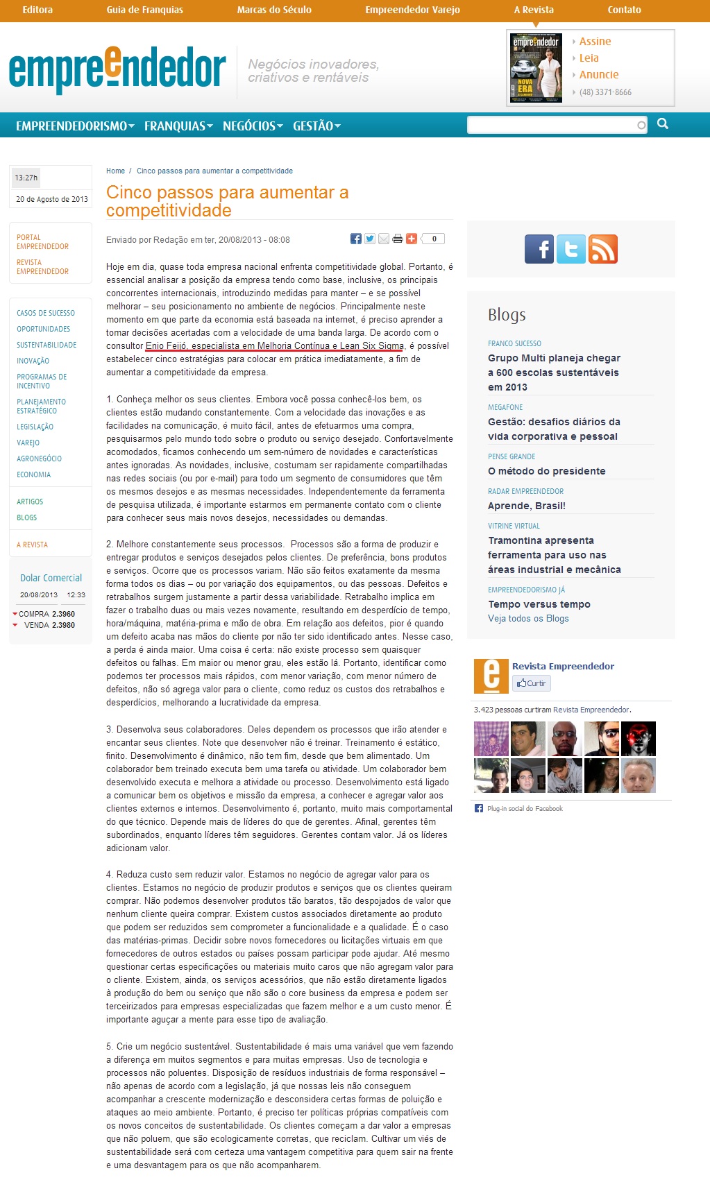 REVISTA EMPREENDEDOR (ONLINE) - Cinco passos para aumentar a competitividade
