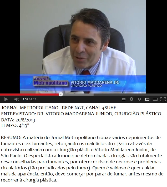 Clipping JORNAL METROPOLITANO (REDE NGT) - Cirurgia plástica: especialista diz que, por segurança, paciente tem de parar de fumar 22/08/2013