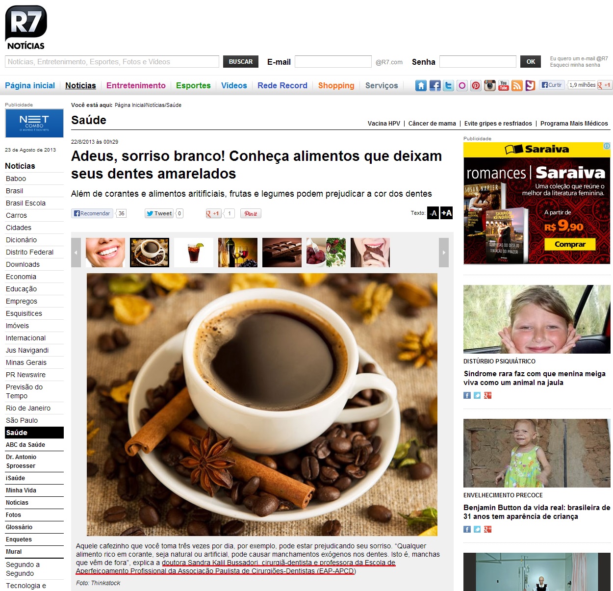 Clipping PORTAL R7 - Adeus, sorriso branco! Conheça alimentos que deixam seus dentes amarelados 23/08/2013