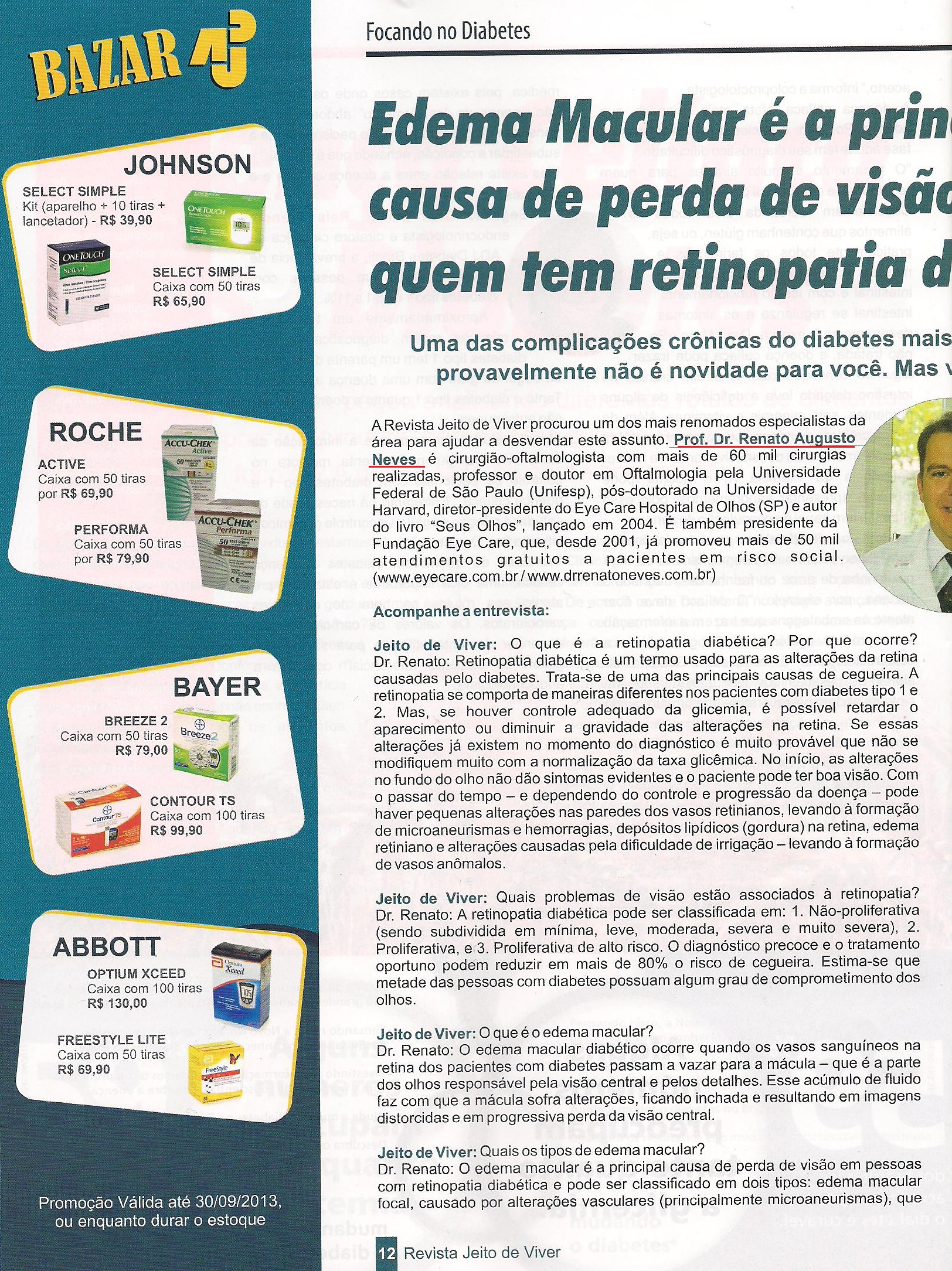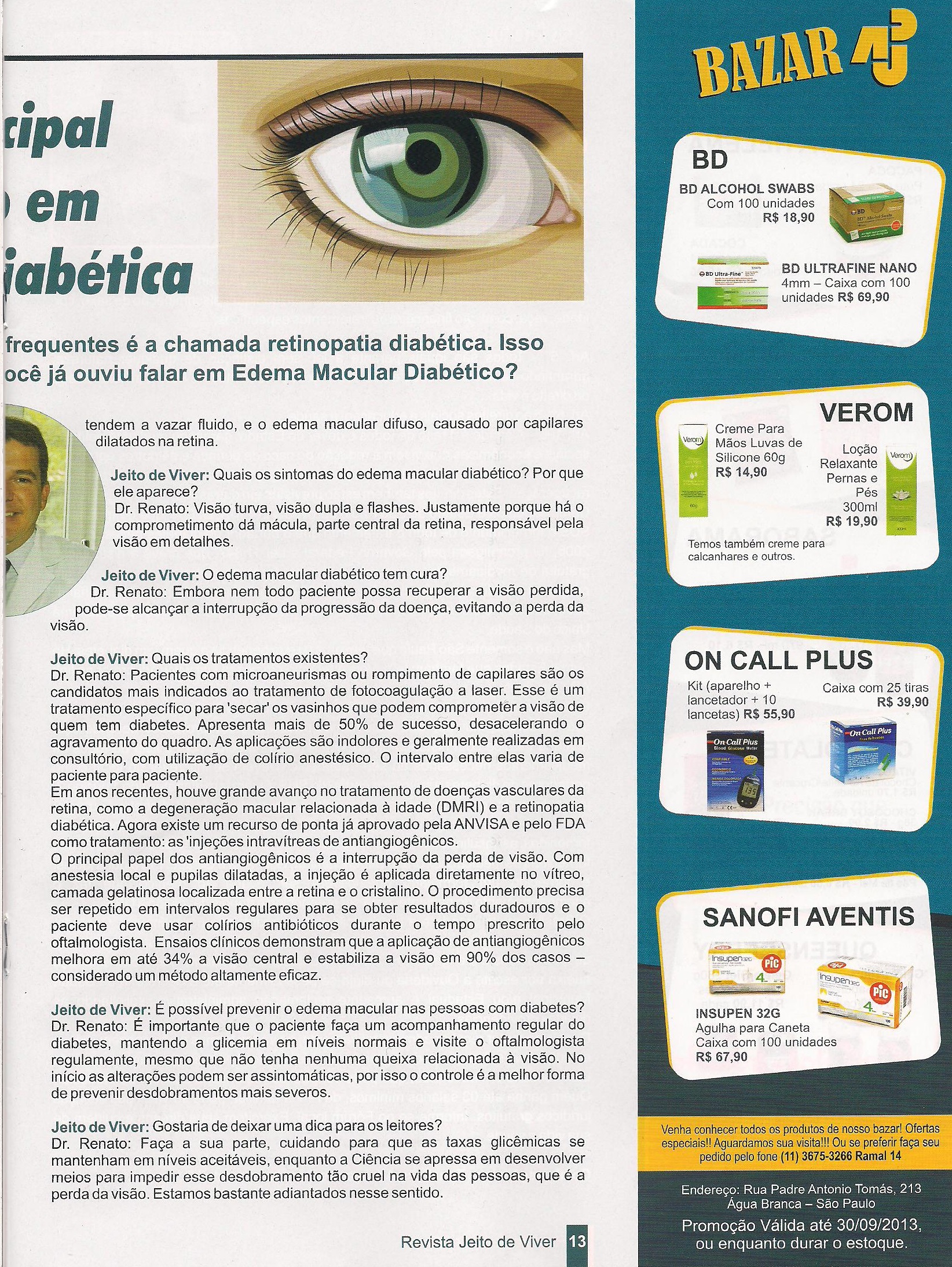 Clipping REVISTA JEITO DE VIVER (IMPRESSO) - Edema macular é a principal causa de perda de visão em quem tem retinopatia diabética 27/08/2013