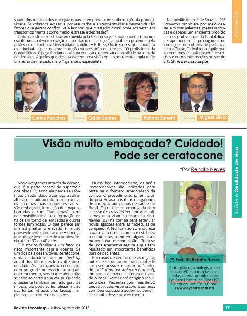 Clipping REVISTA FECONTESP (FEDERAÇÃO DOS CONTABILISTAS DO ESTADO DE SÃO PAULO) - Visão muito embaçada? Cuidado! Pode ser ceratocone 28/08/2013