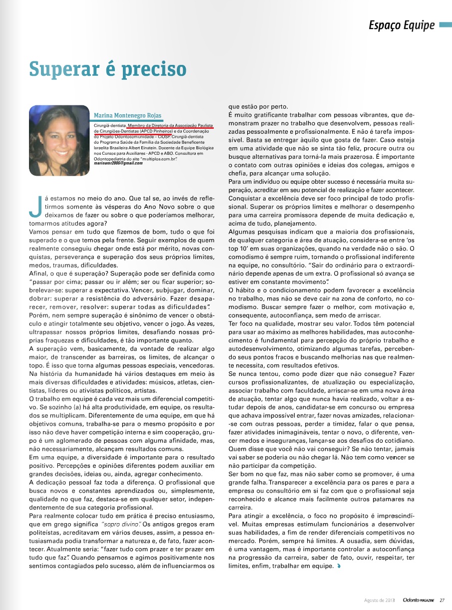 REVISTA ODONTO MAGAZINE (IMPRESSO) - Superar é preciso