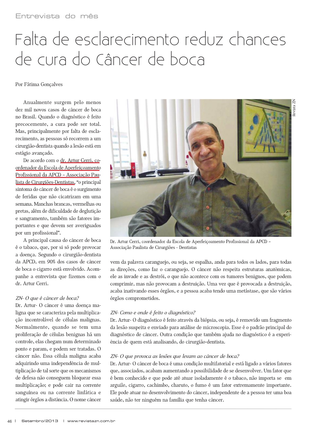 Clipping REVISTA ZN (IMPRESSO) - Falta de esclarecimento reduz chances de cura do câncer de boca 10/09/2013