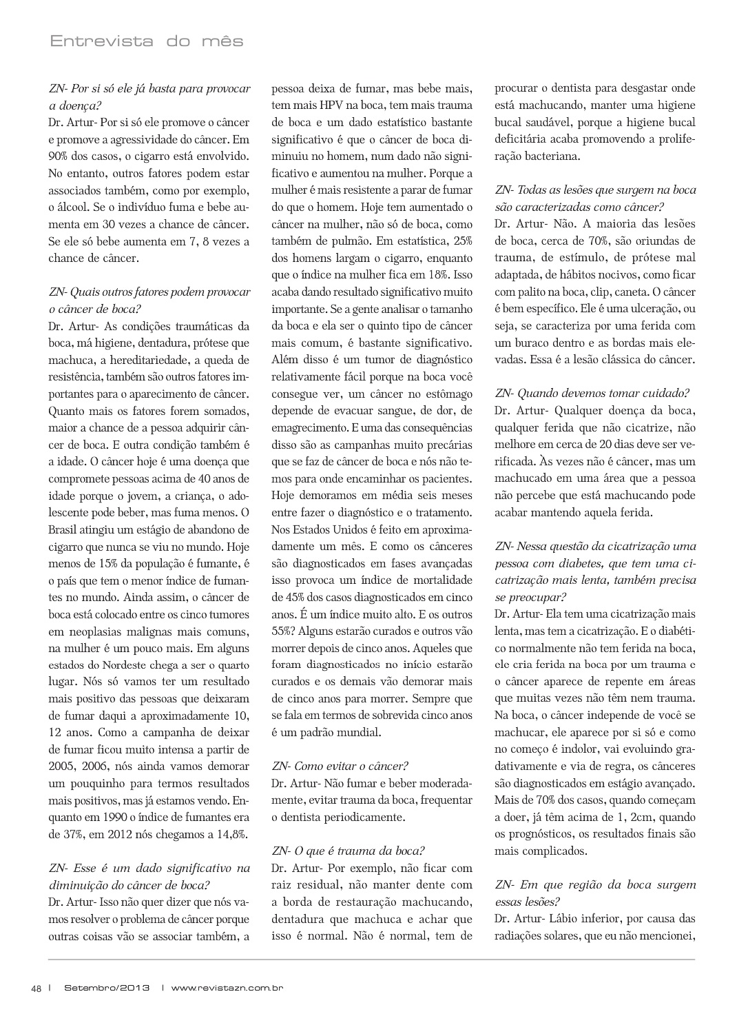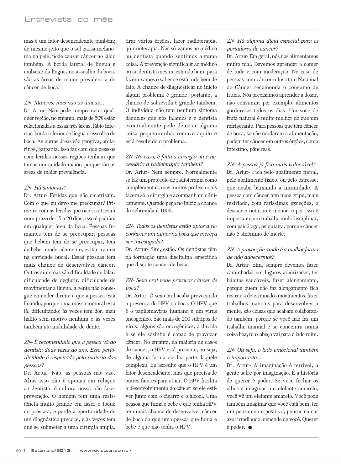 Clipping REVISTA ZN (IMPRESSO) - Falta de esclarecimento reduz chances de cura do câncer de boca 10/09/2013