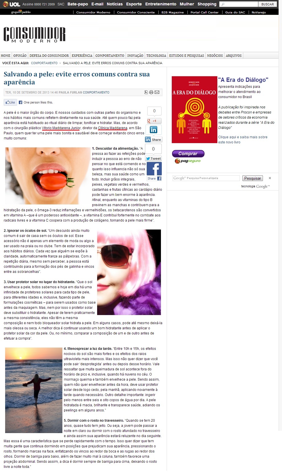 Clipping PORTAL CONSUMIDOR MODERNO - Salvando a pele: evite erros comuns contra sua aparência 16/09/2013