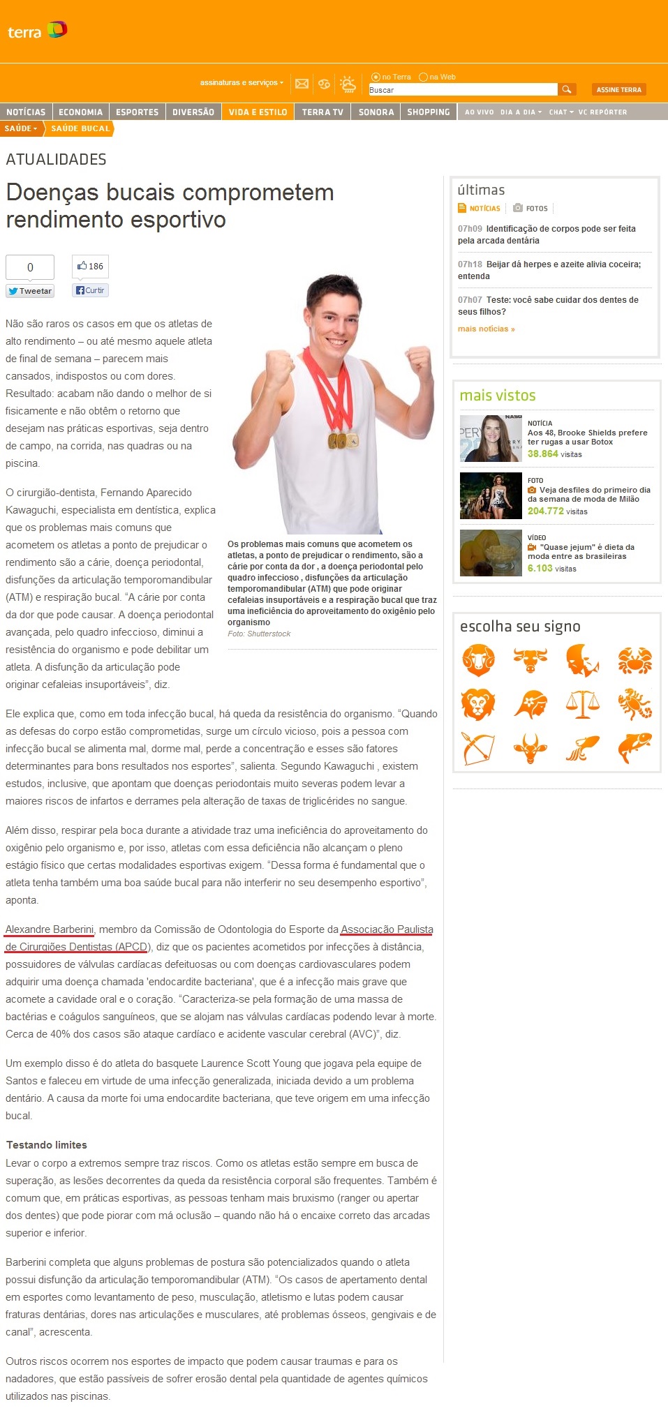 PORTAL TERRA - Doenças bucais comprometem rendimento esportivo