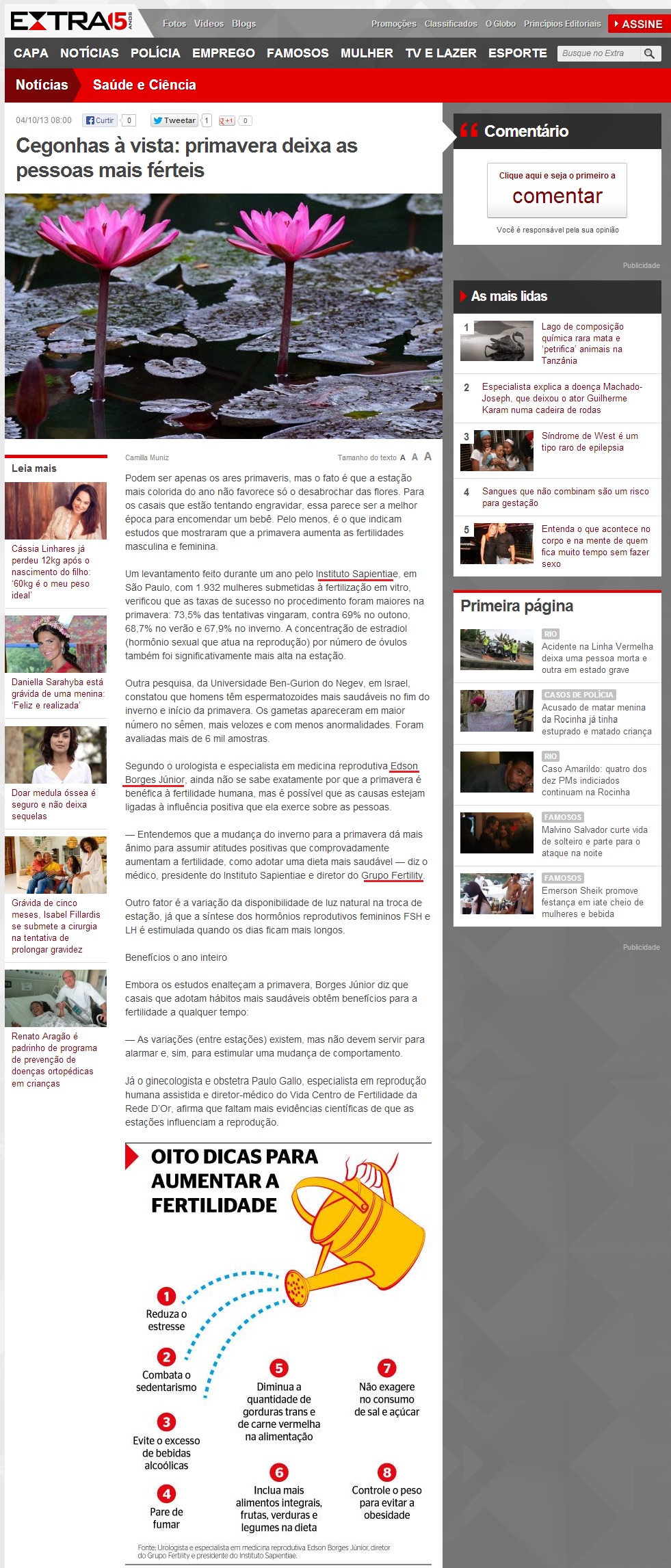 Clipping JORNAL EXTRA (ONLINE) - Cegonhas à vista: primavera deixa as pessoas mais férteis 04/10/2013