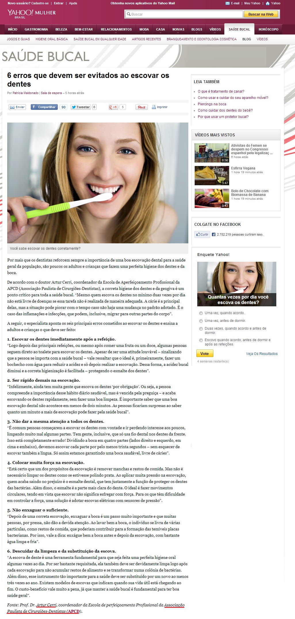 PORTAL YAHOO MULHER - Seis erros que devem ser evitados ao escovar os dentes