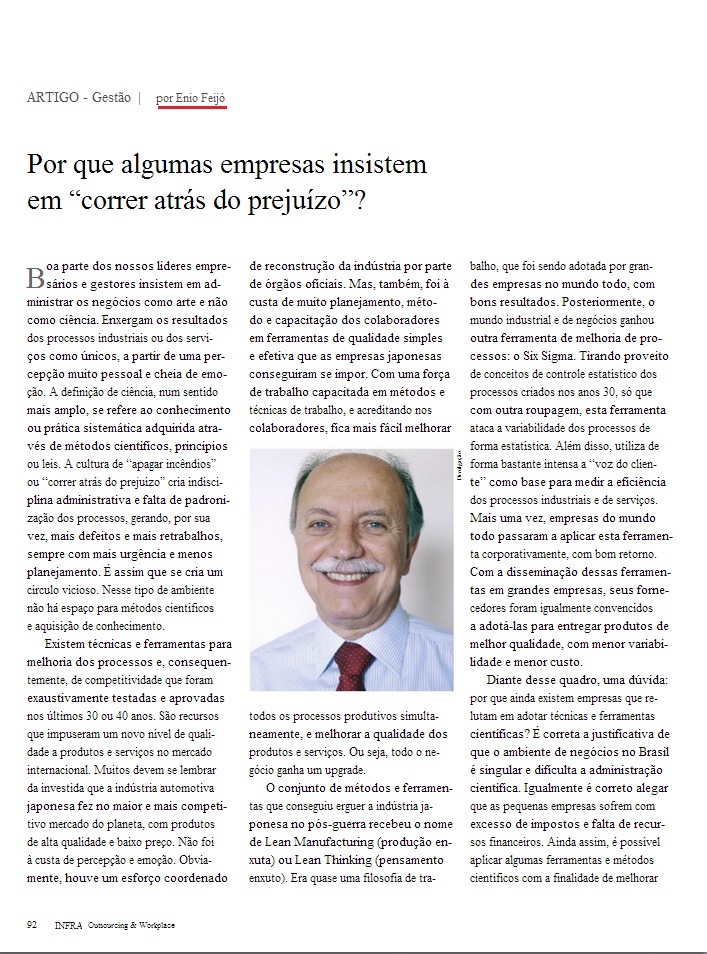 Clipping REVISTA INFRA (IMPRESSO) - Por que algumas empresas insistem em “correr atrás do prejuízo”? 15/10/2013