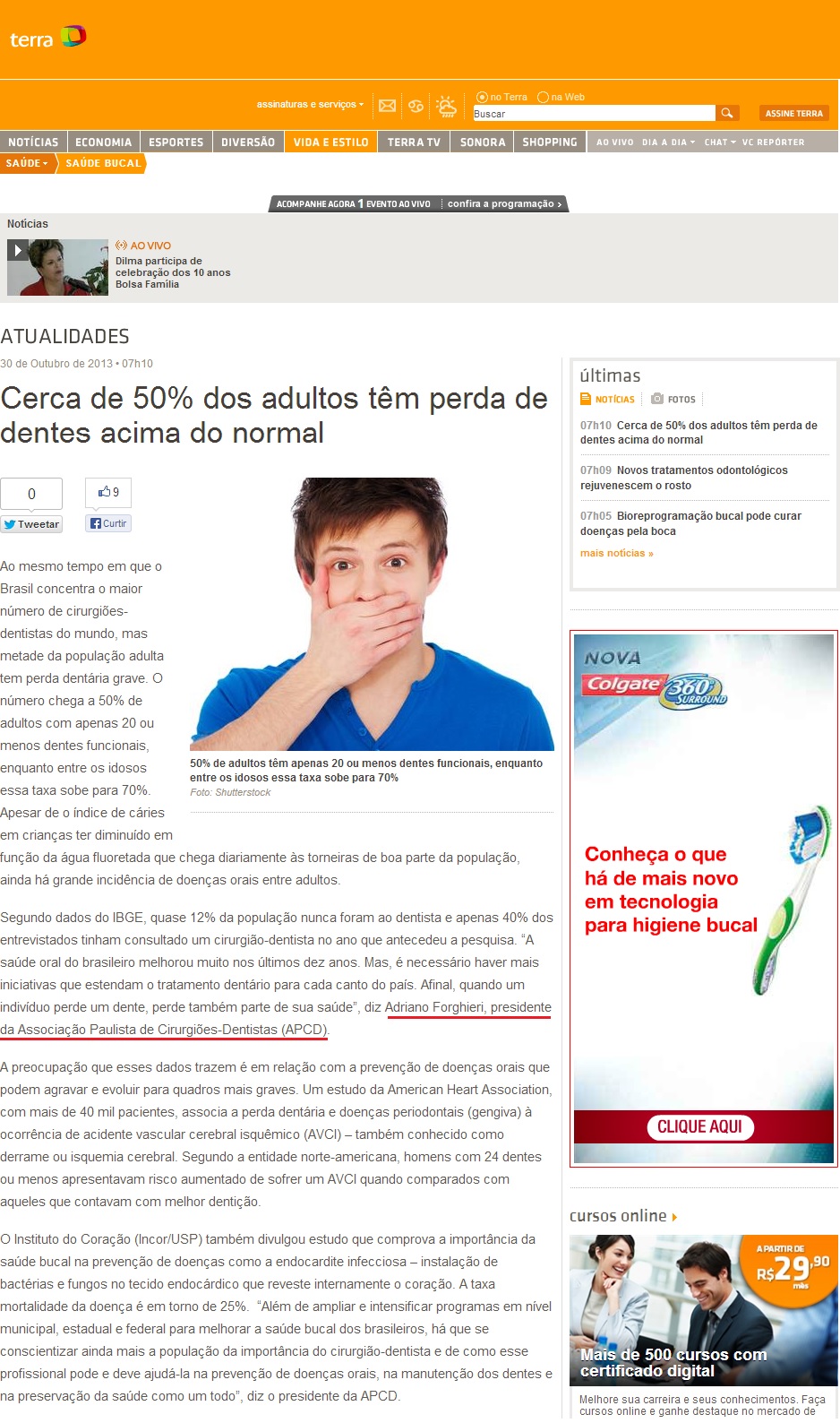 PORTAL TERRA - Cerca de 50% dos adultos têm perda de dentes acima do normal
