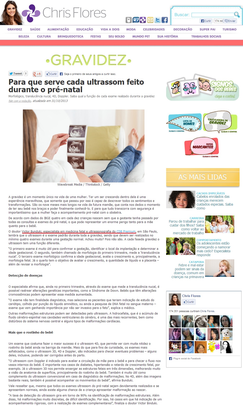 Clipping PORTAL CHRIS FLORES (R7) - Para que serve cada ultrassom feito durante o pré-natal 31/10/2013