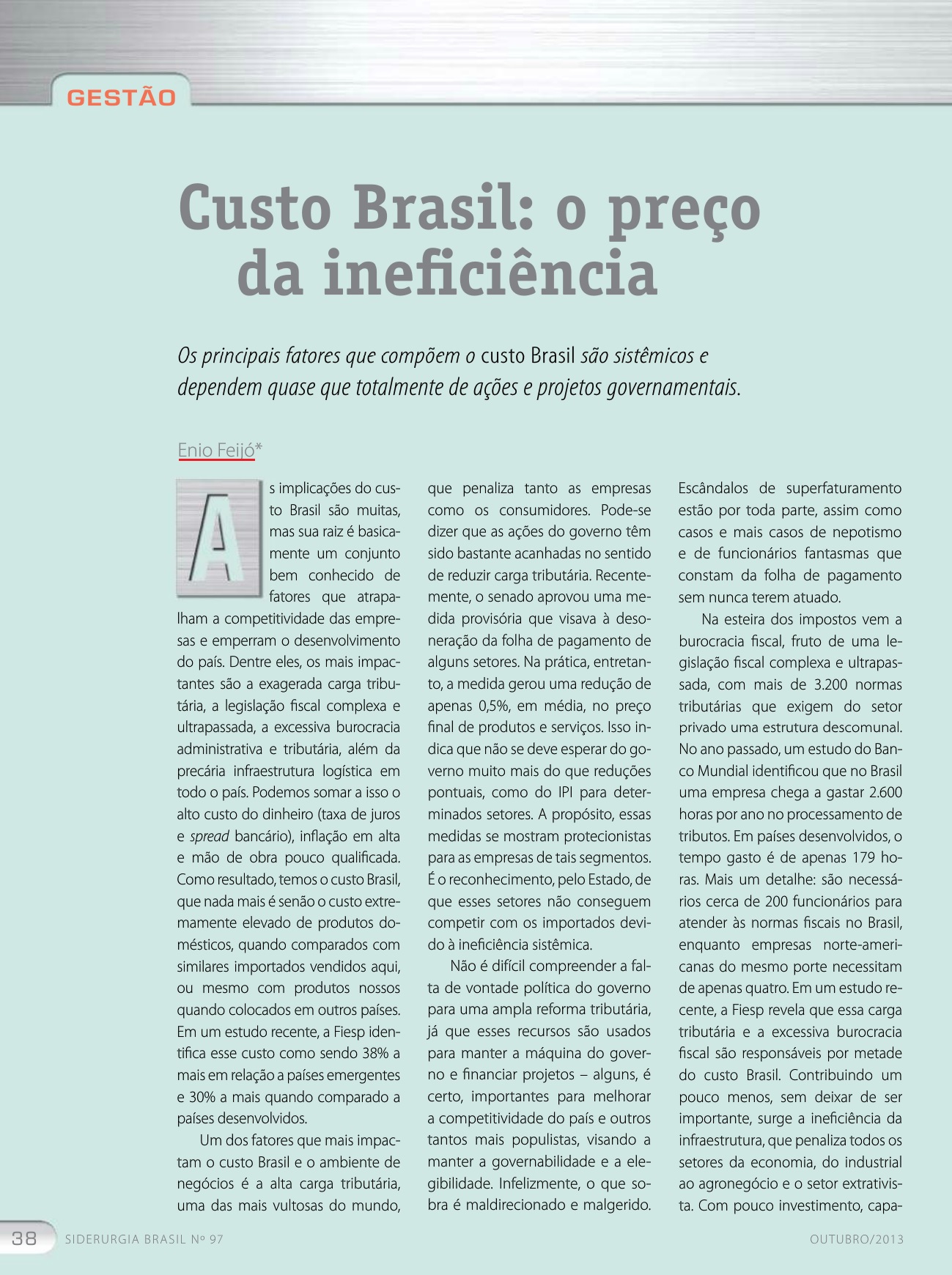 REVISTA SIDERURGIA BRASIL (IMPRESSO) - Custo-Brasil: o preço da ineficiência