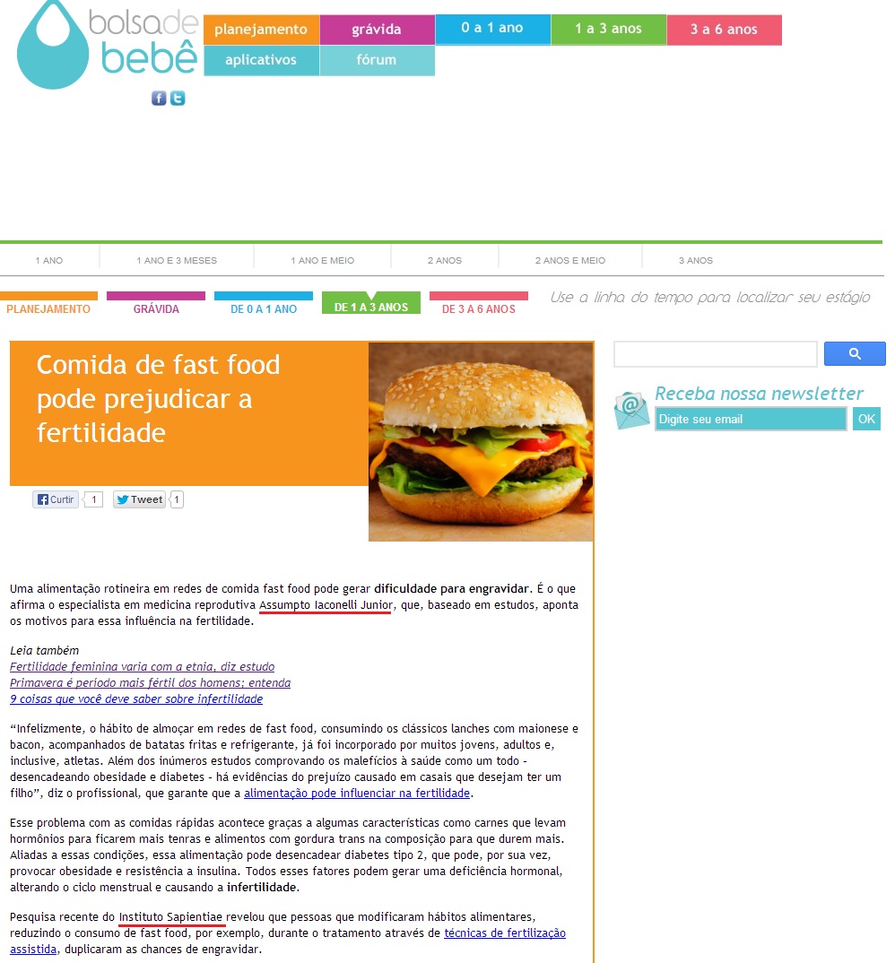 PORTAL BOLSA DE BEBÊ (TERRA) - Comida de fast food pode prejudicar a fertilidade