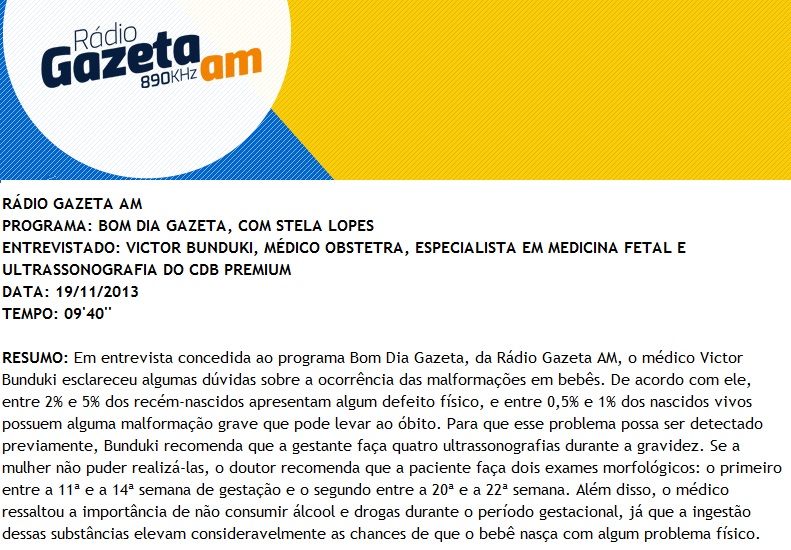 RÁDIO GAZETA AM - Entrevista com o Dr. Victor Bunduki