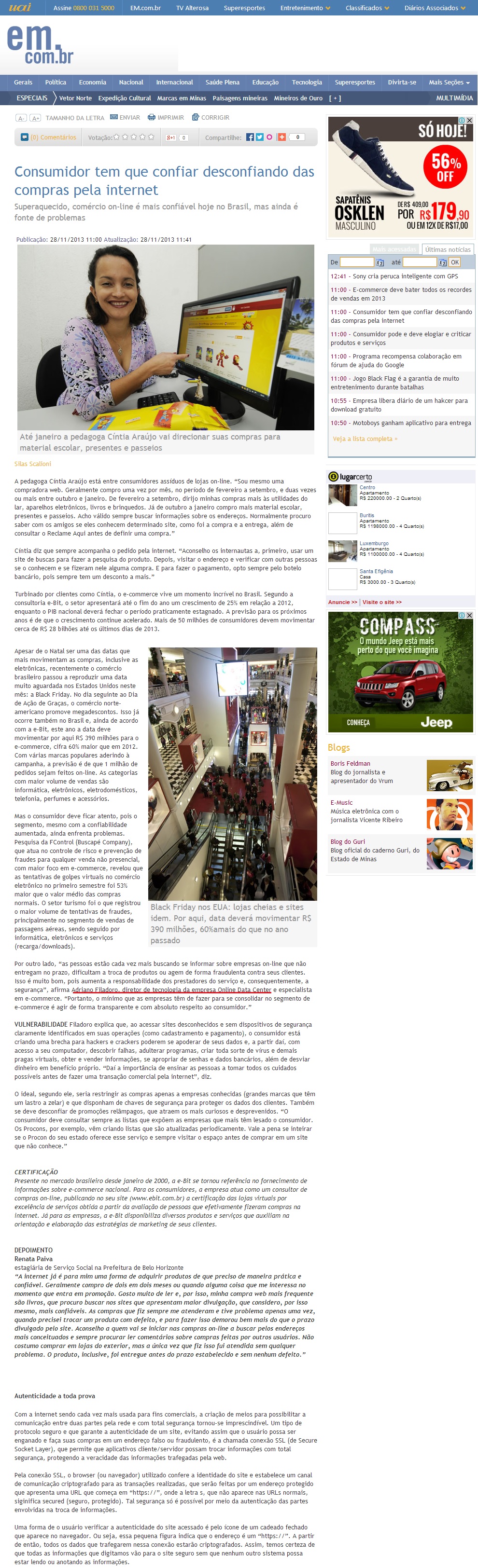 Clipping JORNAL ESTADO DE MINAS (ONLINE) - Consumidor tem que confiar desconfiando das compras pela internet 29/11/2013