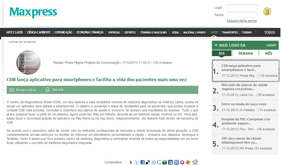 PORTAL MAXPRESS - CDB em 1º LUGAR no Portal de Jornalismo