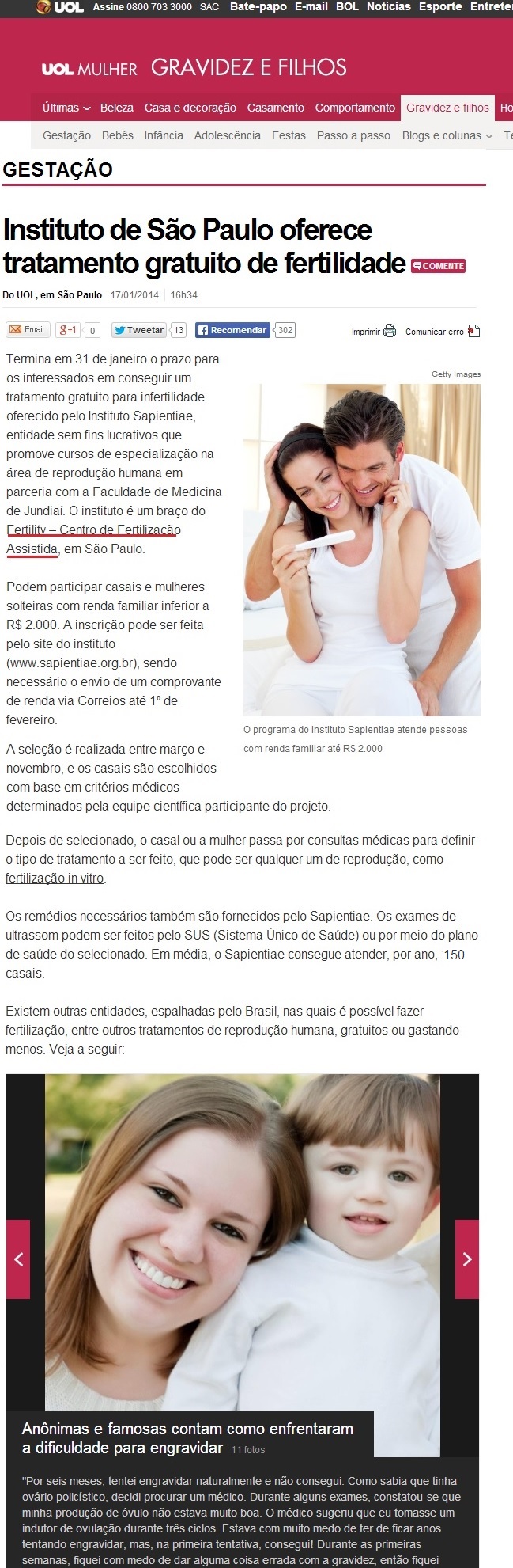 PORTAL UOL - Instituto de São Paulo oferece tratamento gratuito de fertilidade