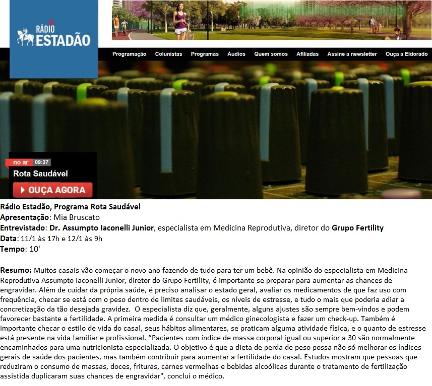 RÁDIO ESTADÃO - Quer ter um bebê em 2014? Prepare seu corpo desde já