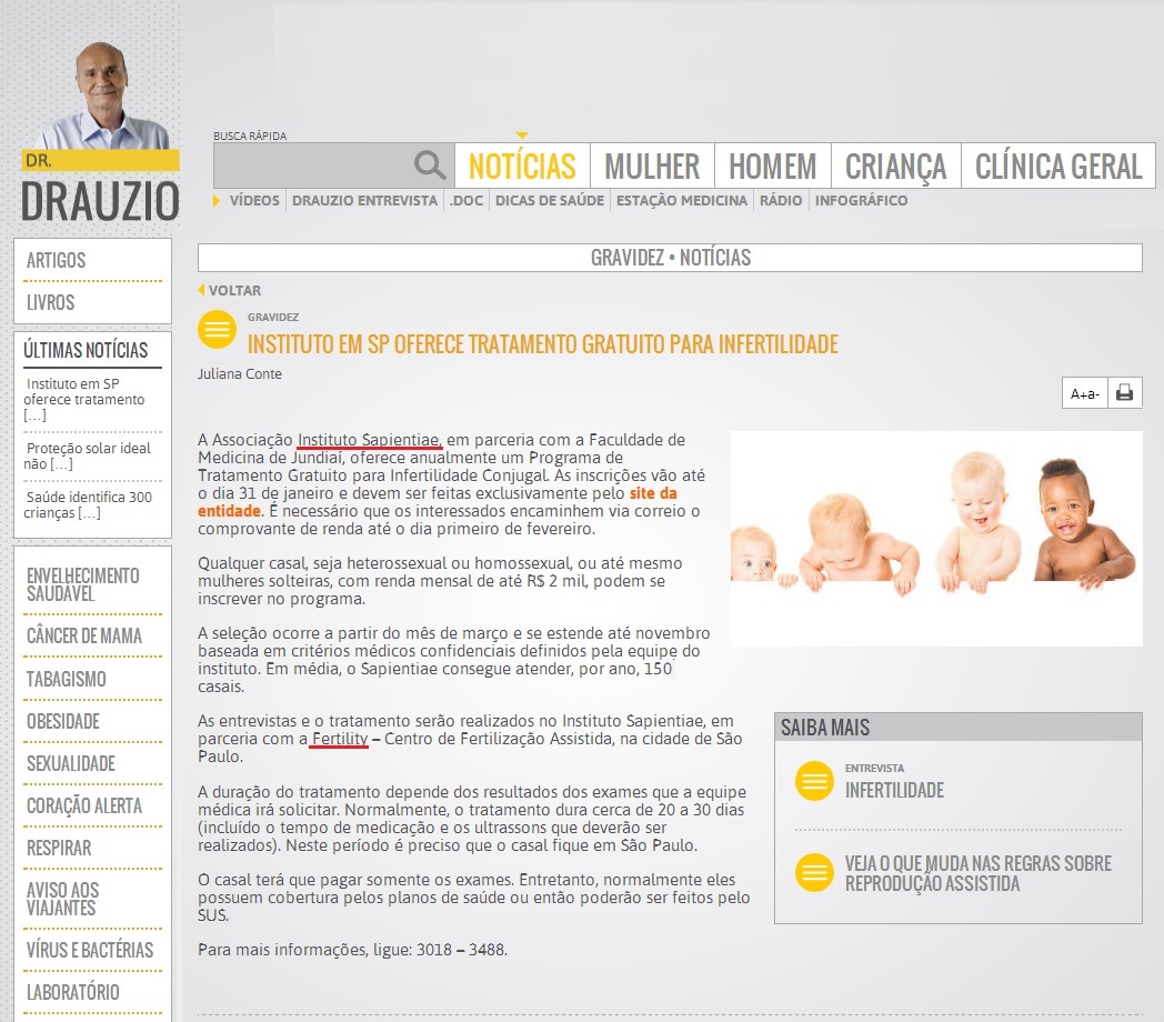 DR. DRAUZIO VARELLA (SITE) - Tratamento gratuito para infertilidade conjugal