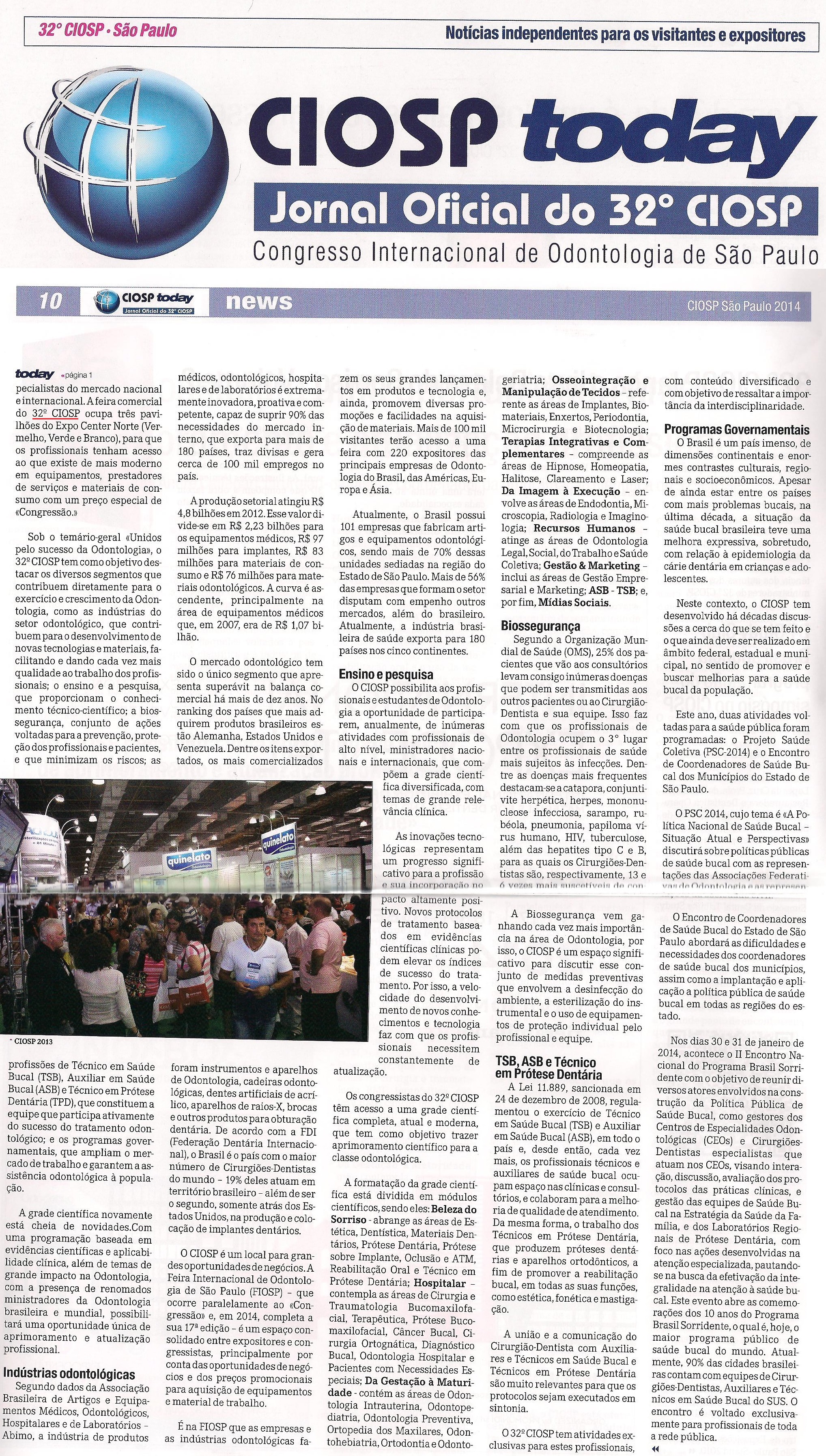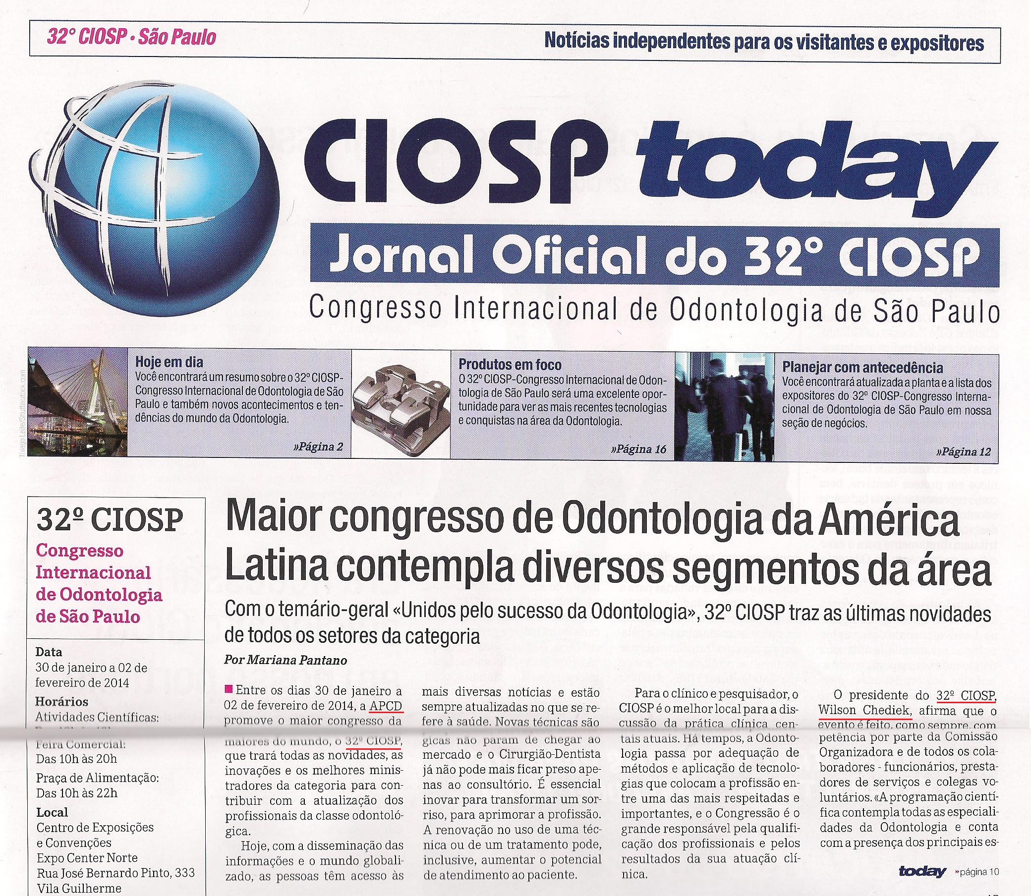 Clipping JORNAL CIOSP TODAY - Maior congresso de Odontologia da América Latina contempla diversos segmentos da área 05/02/2014
